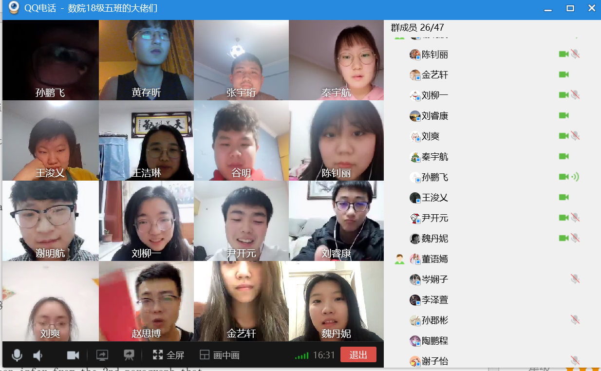 2018级5班采用视频会议的方式召开“雨涤新夏战疫先,数院齐心御时艰”线上主题班会。