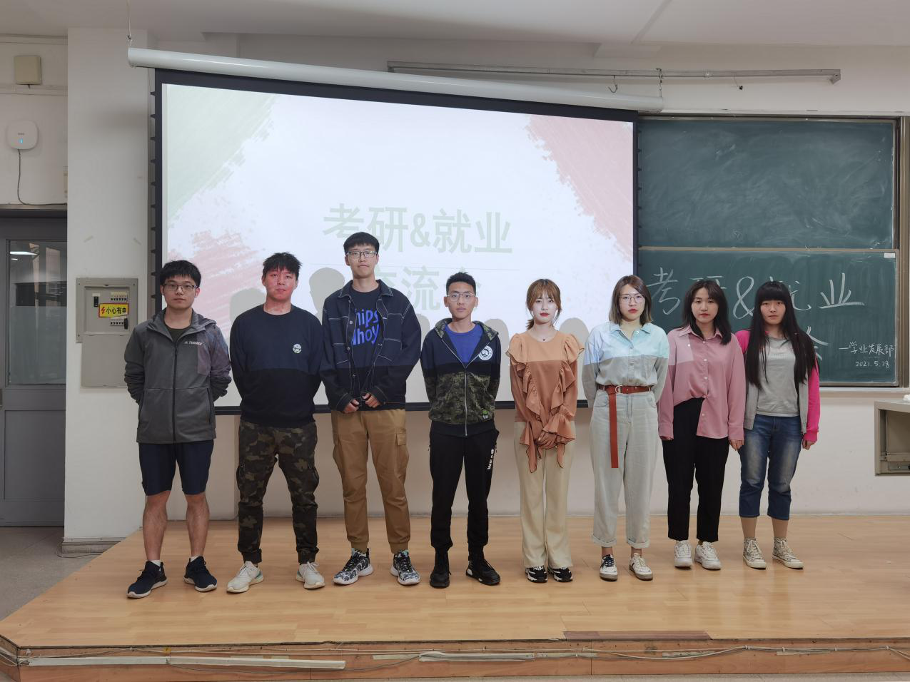 学生会学业发展部于5月28日晚18:30在逸夫楼第七阶梯教室举办考研—就业经验交流会,邀请了2017级本科生郝擎宇、庞怡然、吴付超、于甜甜、胡梦迪、吴成澳、文逸欣、张晓含、韩萌萌向同学们分享考研与就业的经验与技巧。