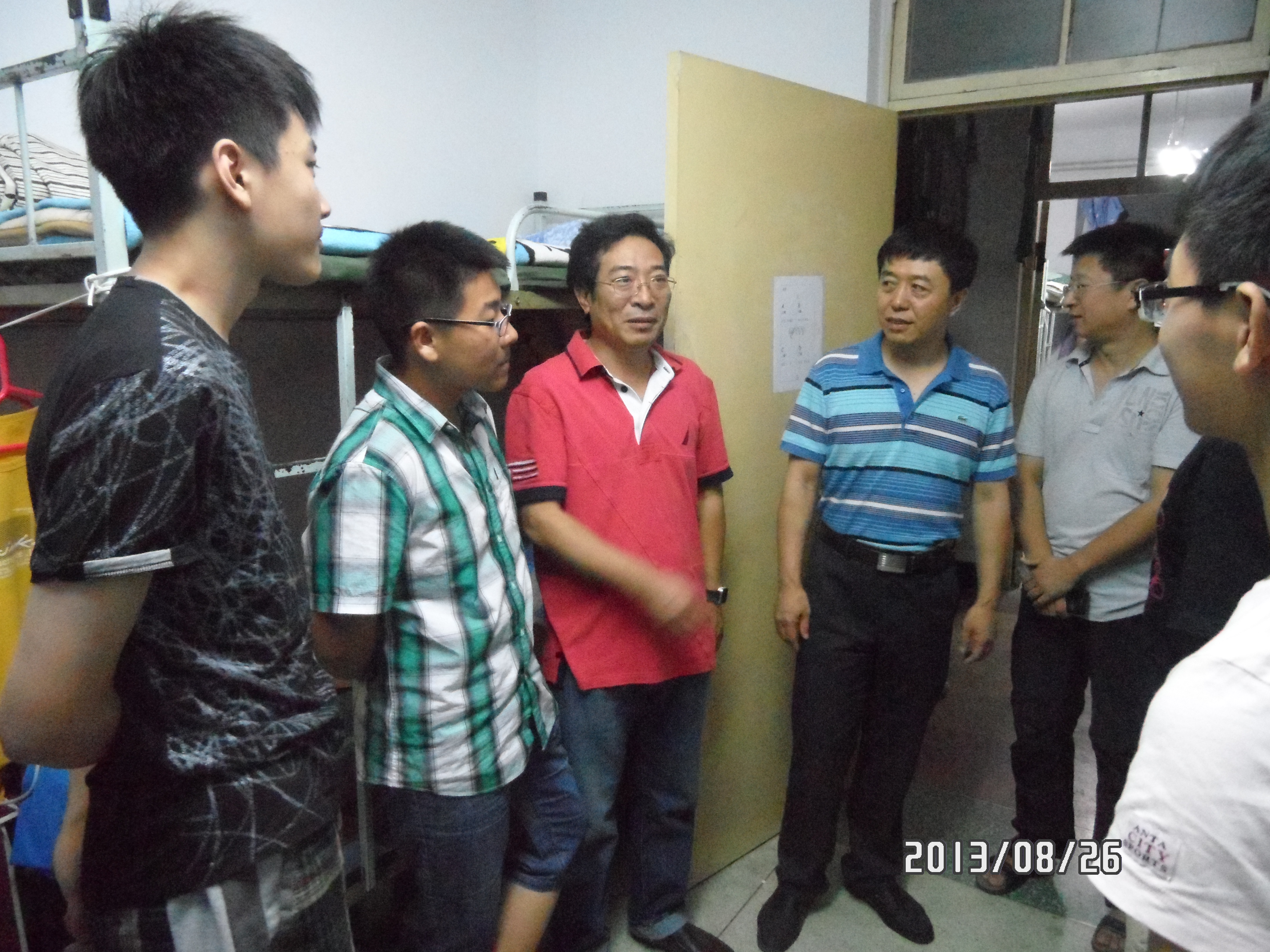 院长李辉来老师、党委书记李晓光老师、副院长邹永魁老师、党委副书记赵任老师在几位辅导员老师的陪同下来到了南二和南四新生寝室,了解新生的报到、住宿等情况。