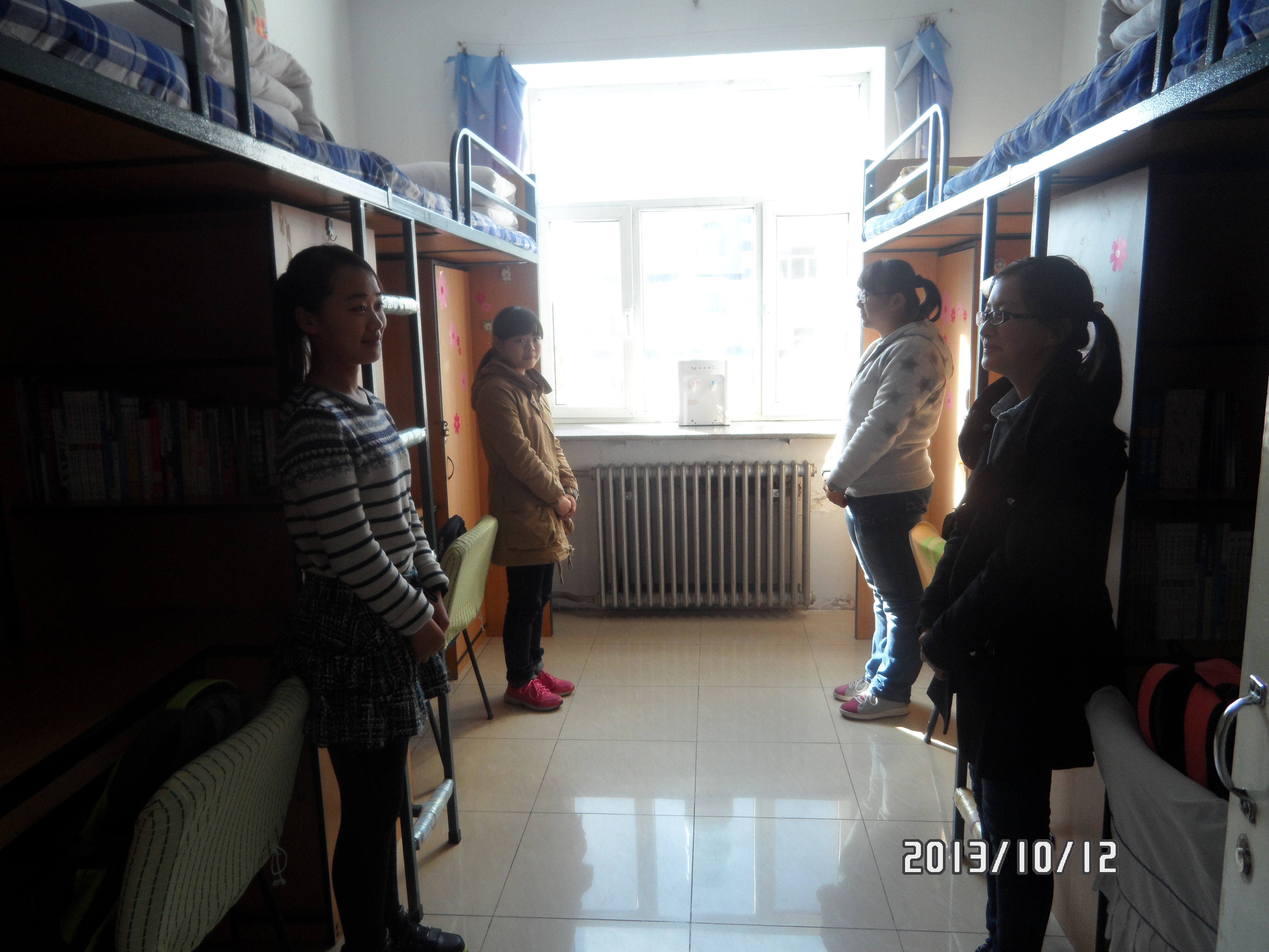 院检活动如期进行。2013级辅导员申川、学生会主席王艺霖以及女综部和生管会的全体成员作为本次院检的评委,共同对2013级同学的寝室进行了全面细致的检查,对各个寝室的卫生进行打分。