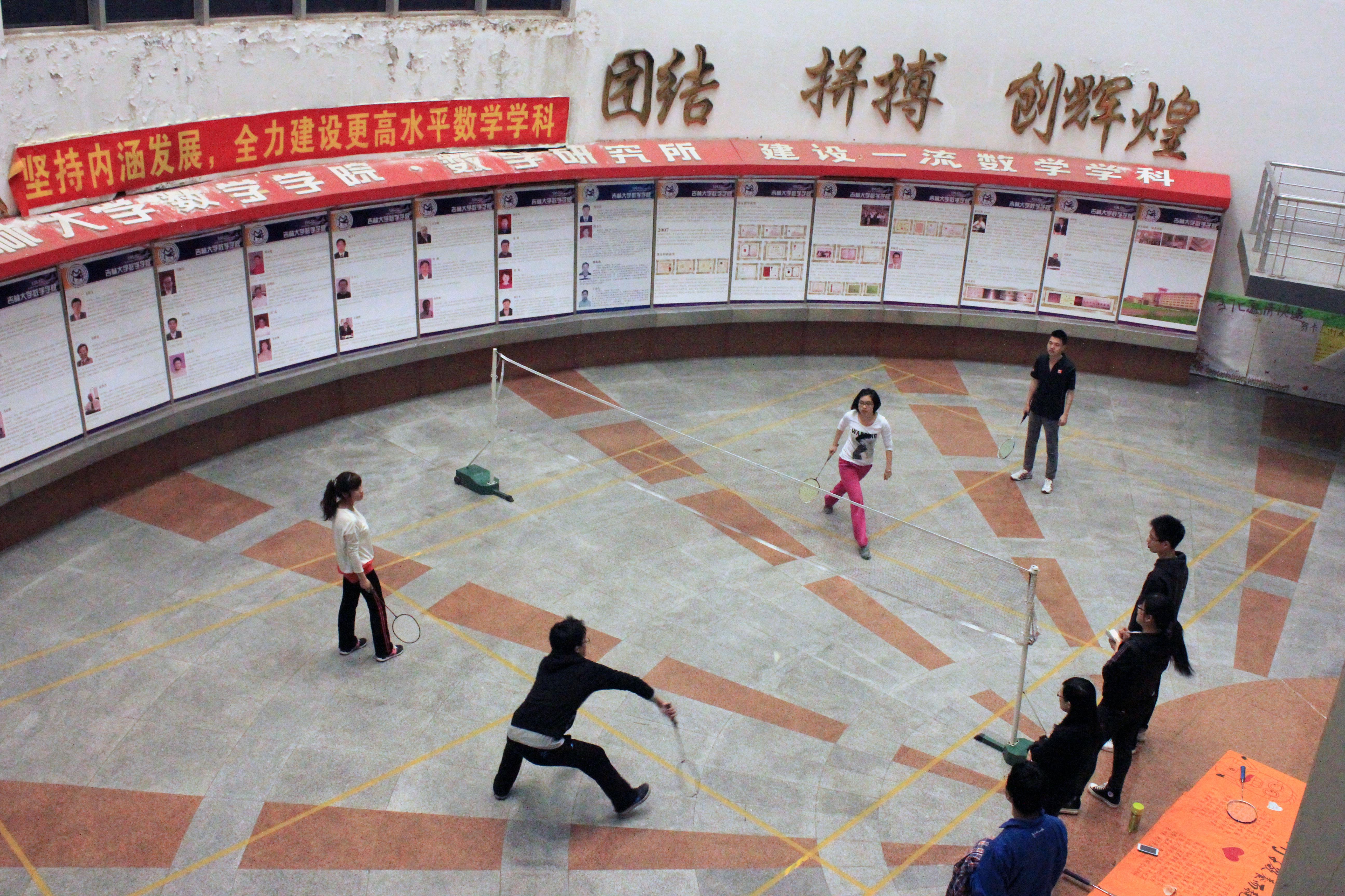 第三届研究生羽毛球公开赛”。继04月14日晚精彩的单打(女单、男单)初赛及晋级赛后,我院于于04月17晚在数学楼进行了更为精彩的双打(男双、女双、混双)初赛及晋级赛!