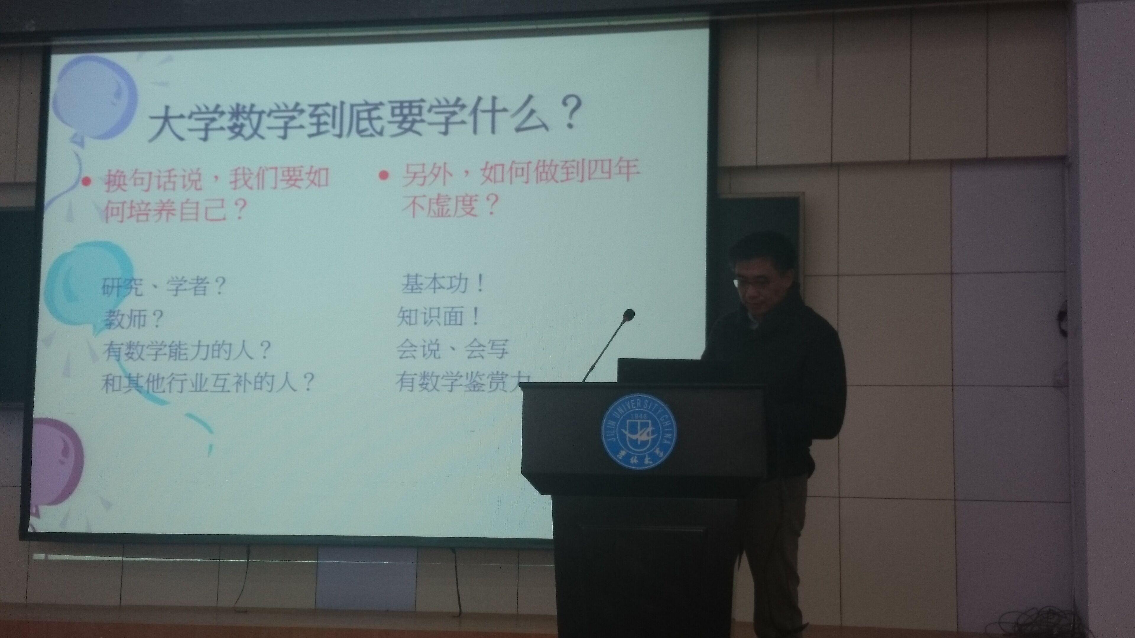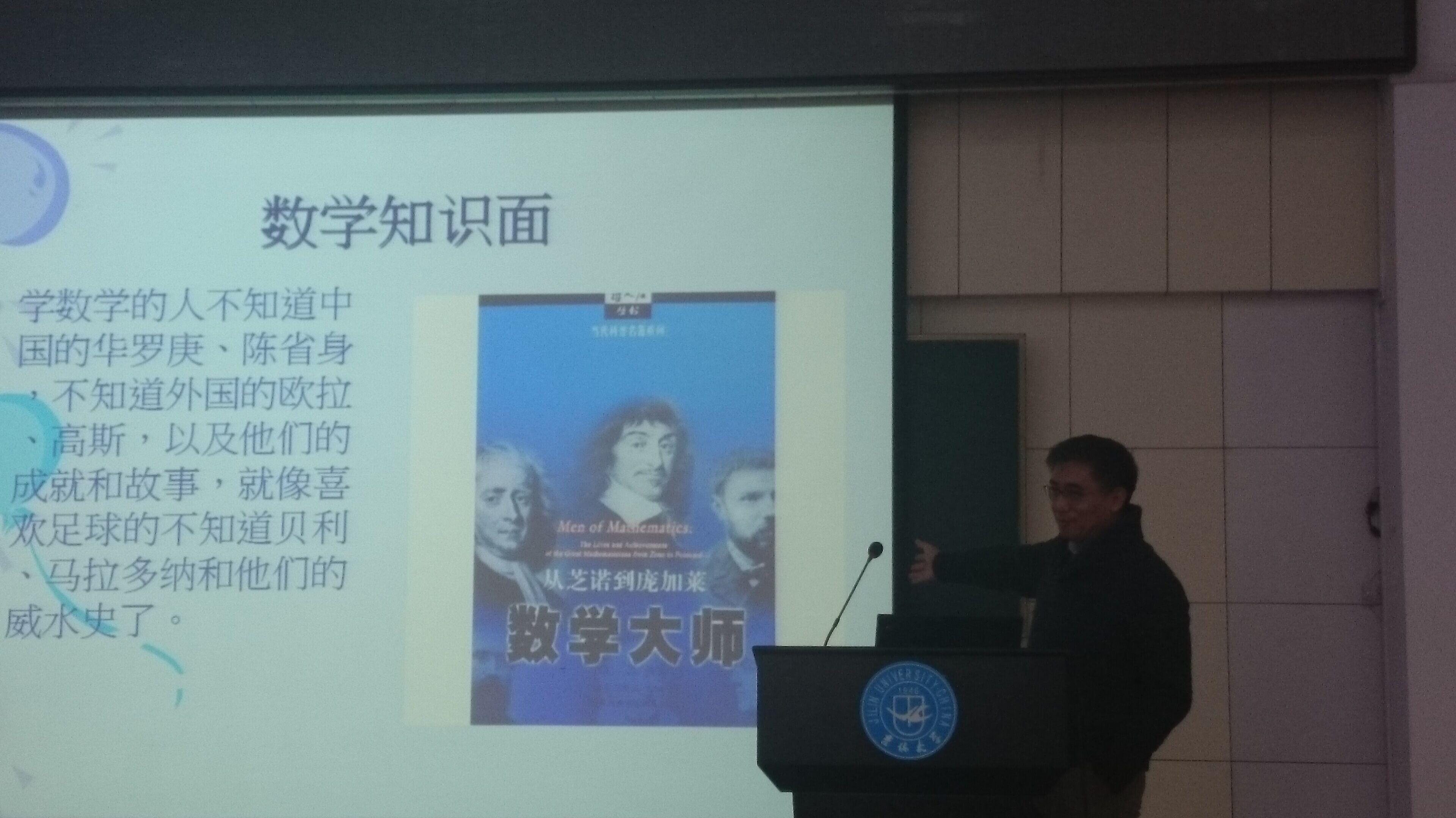 邀请香港浸会大学副校长、《数学文化》主编汤涛教授为同学们做主题为“数学微文化”的讲座。出席讲座的有b站