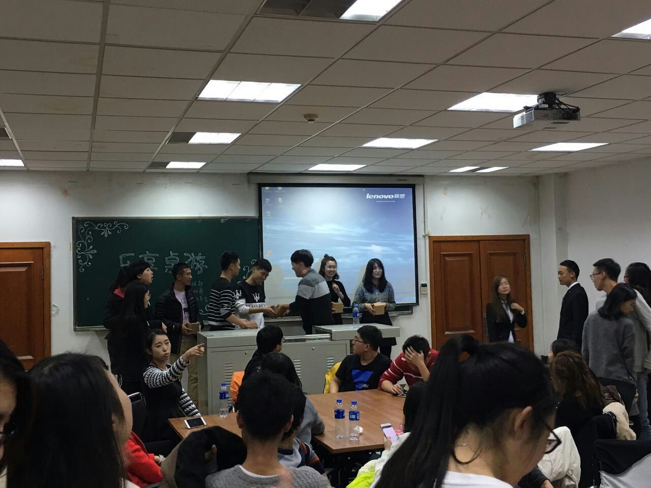 没有辜负同学们的摩拳擦掌,六点半桌游主题活动准时开始。一边进行的是桌游“狼人杀”,同学们围坐一桌开始游戏,随着工作人员的引导,场上气氛时而轻松时而凝重,有眉头紧锁的思考,也有精彩巧妙的陈词,有不幸出局的懊恼也不乏胜利的喜悦。另一边是桌游“UNO(乌诺)”,现场也是笑语不断。游戏结束后,迎来了比赛颁奖的环节。最后,活动在b站