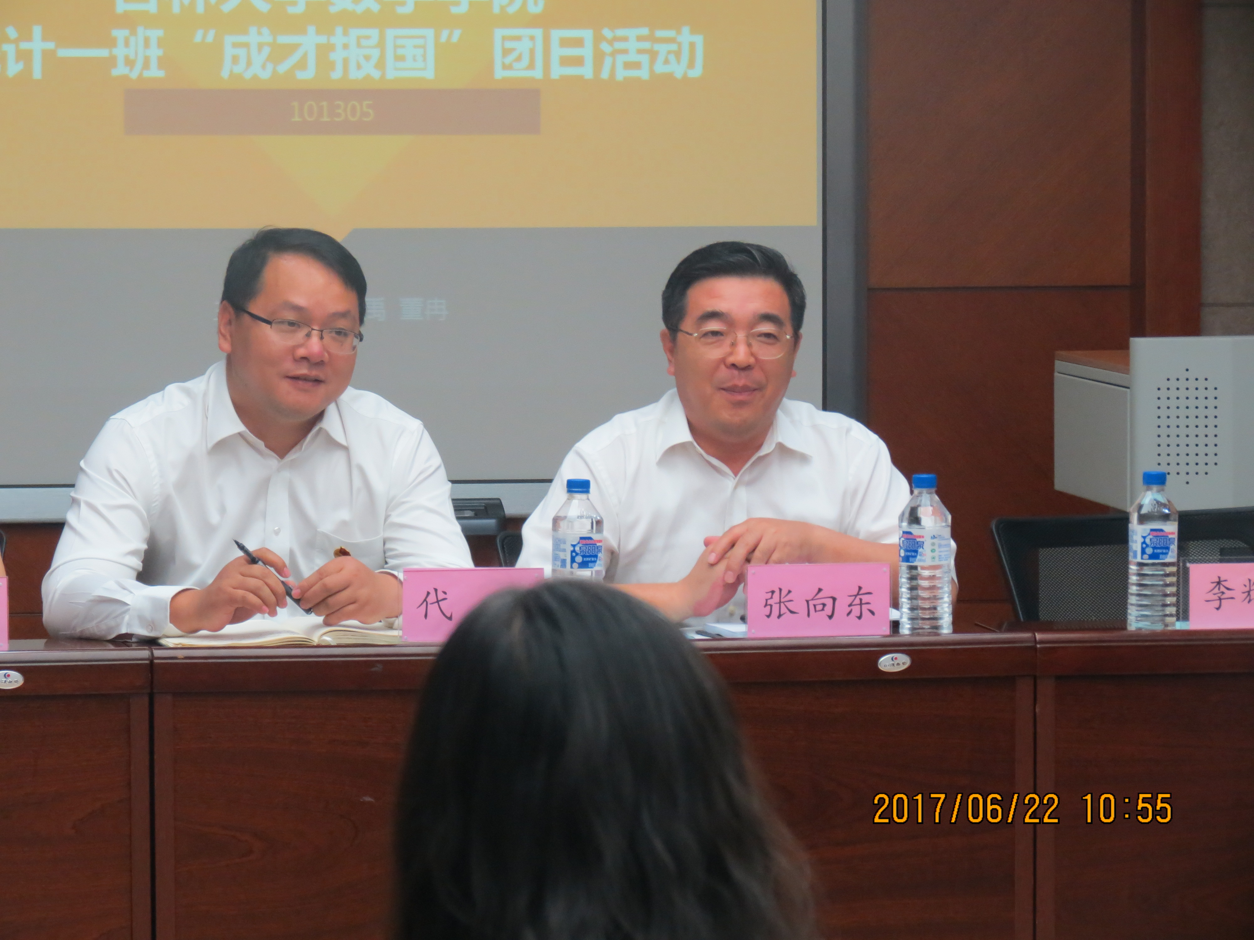 的悠久历史以及在高校数学界的优势地位,以此勉励同学自信并继续勤奋学习;张向东对统计一班的全体同学提出了三点期望:一是成为胸怀大爱的时代青年,在实现伟大中华民族复兴中国梦的征途上贡献出自己的一份力量;二是成为胸怀大爱的吉大人,在以后的求学和工作中铭记母校,做b站