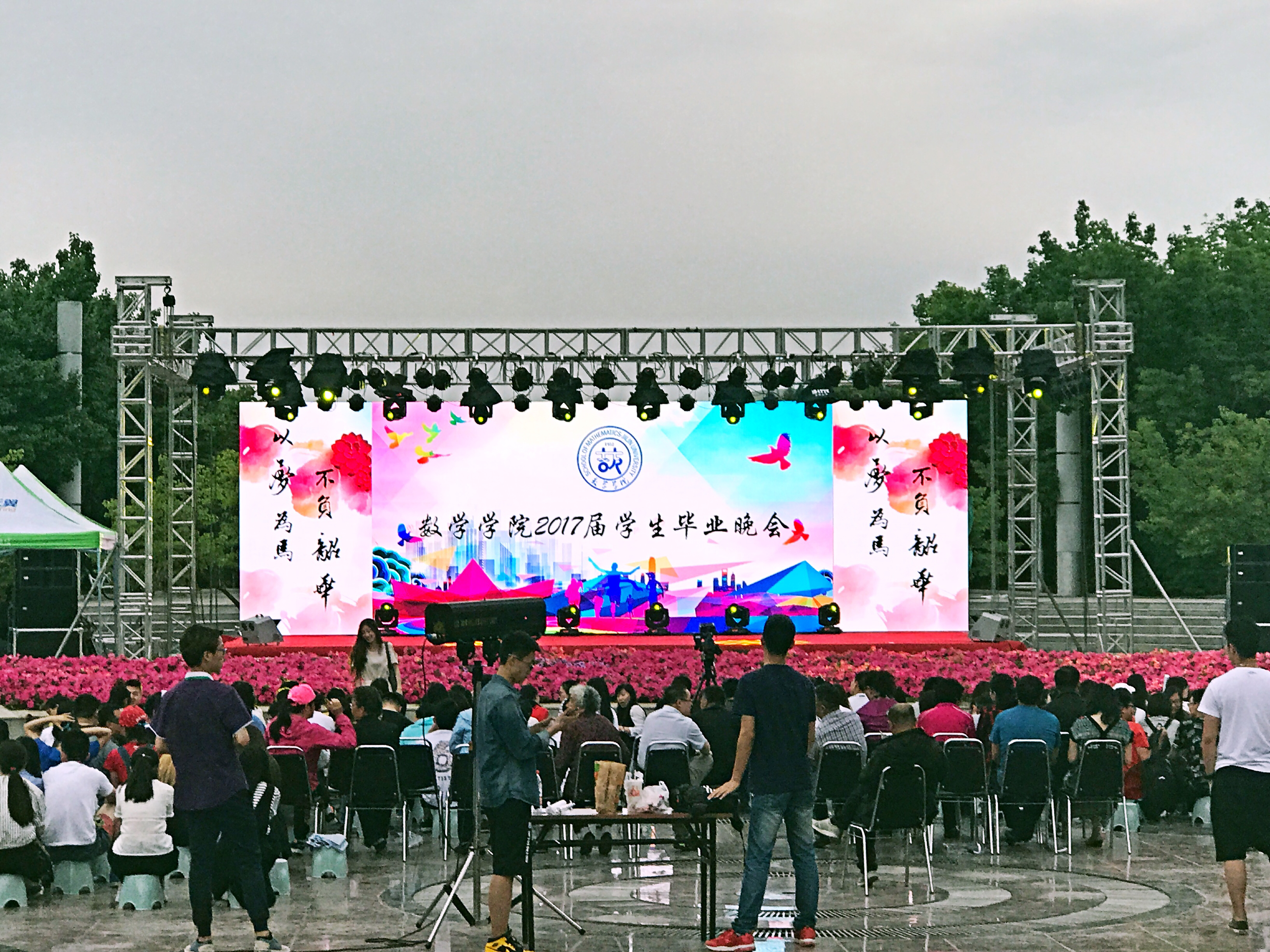 晚会在主持人精彩的介绍后开始,许多节目令人印象深刻,其中张凯老师和2017届本科毕业生阚婷婷带来的《喜欢你》表达了浓浓的师生情,2017届本科毕业生陈龙禹演唱的《暧昧》将气氛带向高潮。接着,2017届本科毕业生梁警琦等带来的舞蹈《let’s play now》引得满场欢呼,还有计算二班带来的《十年》令人追忆过往。最后,一段毕业VCR引人入胜。晚会组织有序,会场气氛良好。