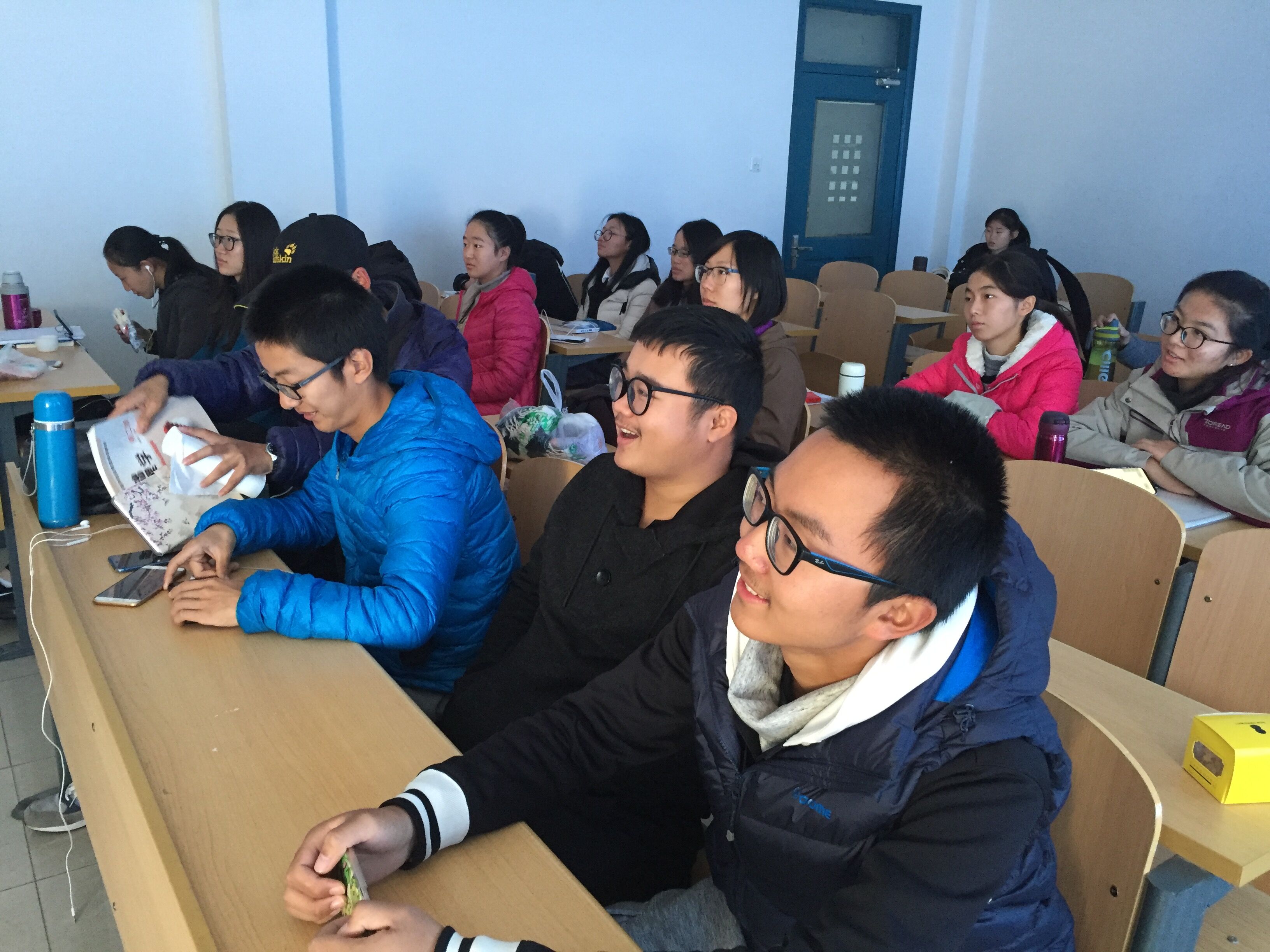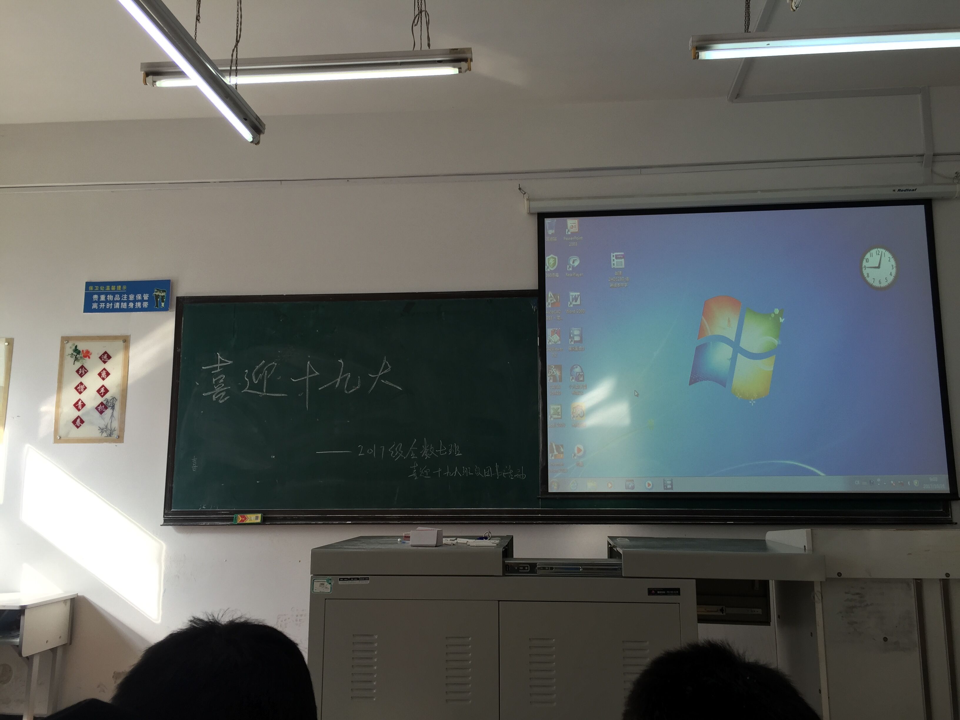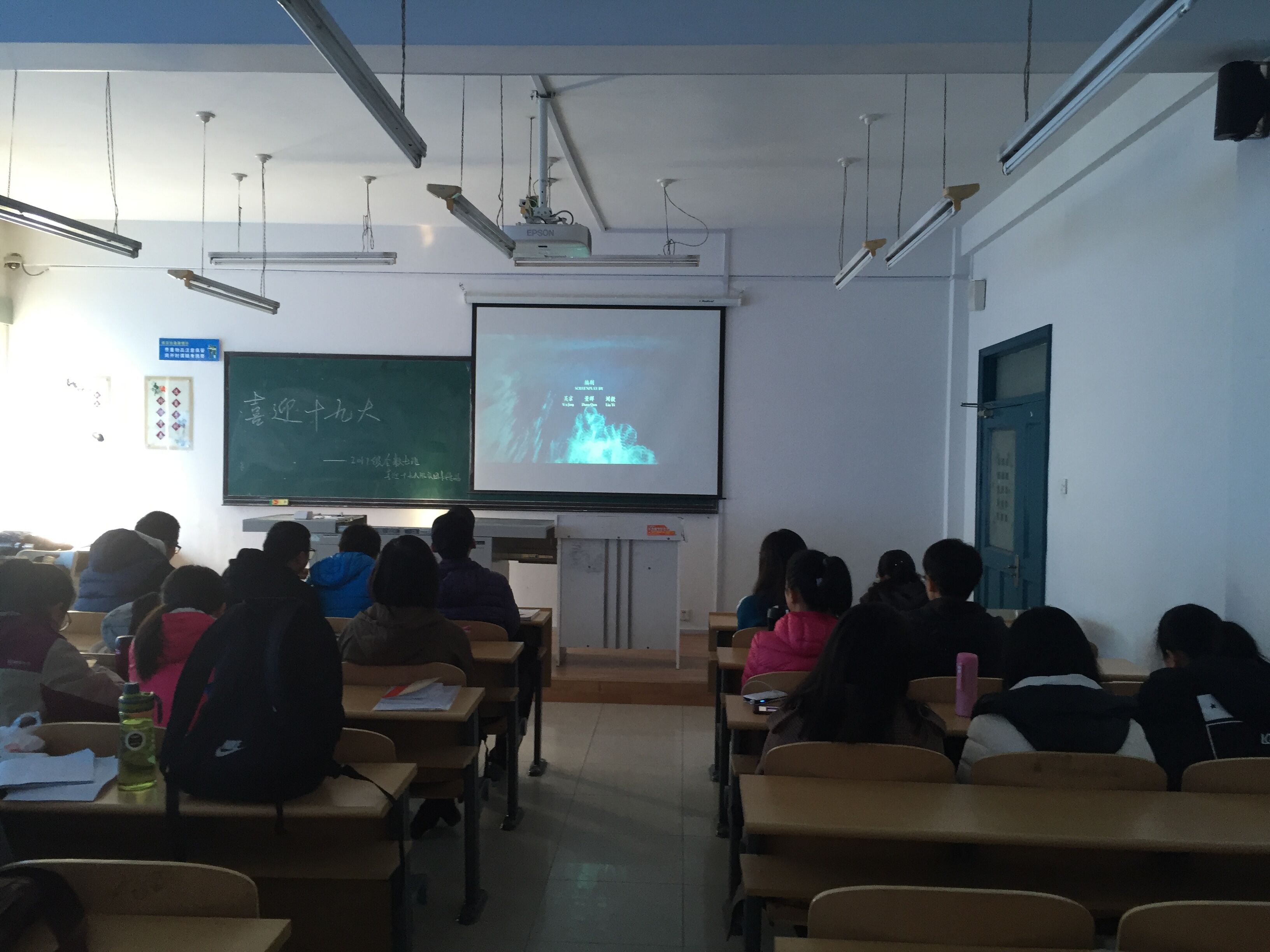 本次班会分为四个阶段。第一阶段,班长赵焕程介绍了十九大:十九大的重要意义、目标和政策。每位同学都急切的期盼十九大的到来。第二阶段,到场同学一起观看爱国电影《战狼二》,宣传委员王一晴在一旁记录同学的观影状态,大家都十分投入。第三阶段,团支书王慧琦带领同学们回顾了近十年来我国在军事、经济、文化等领域的重大进展,并组织同学们积极发言,分享观后感,大家的心中都坚定了报国热忱,纷纷在未来的大学生活中会努力学习,坚持不懈。