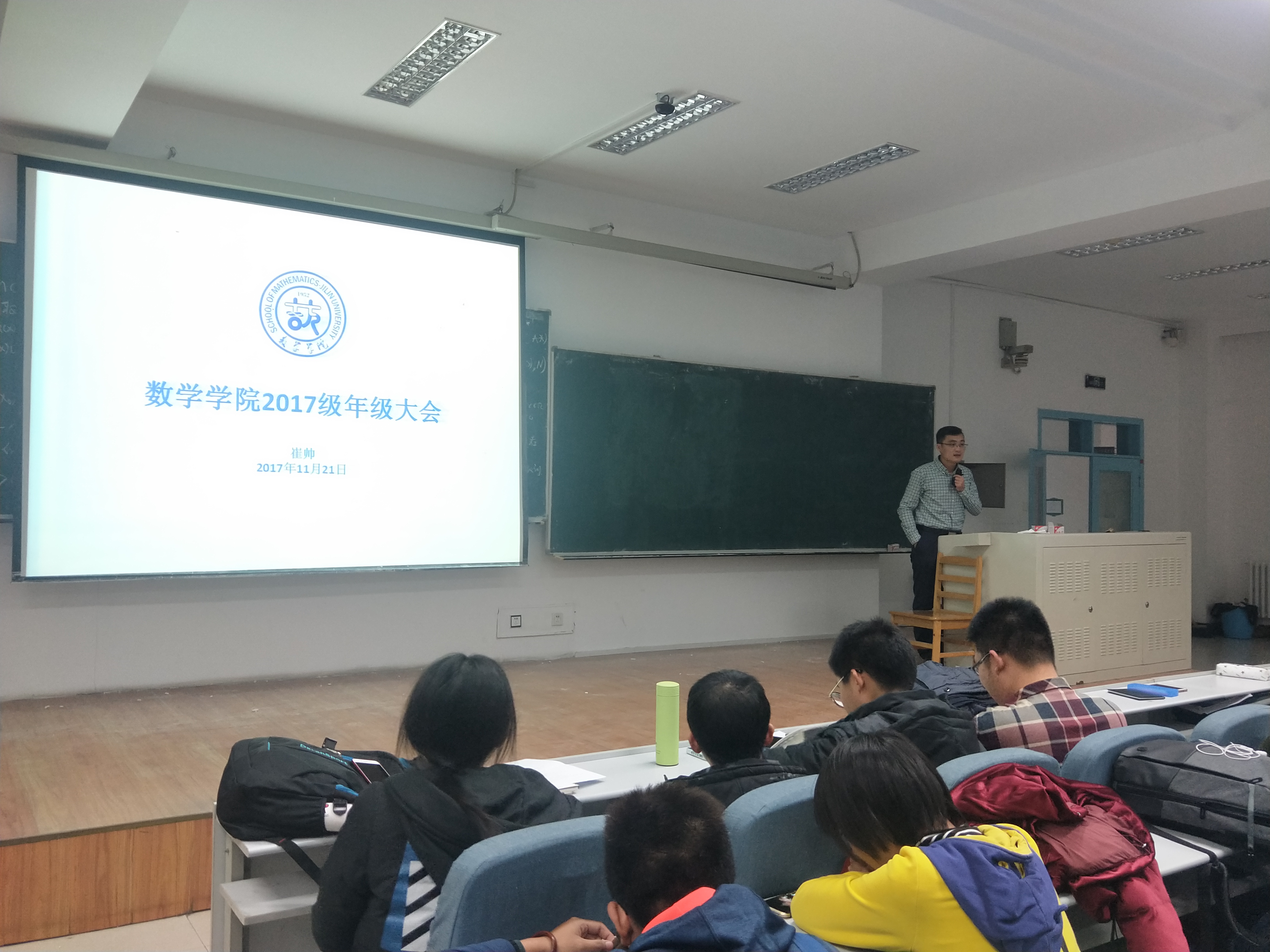 2017级辅导员崔帅老师于2017年11月21日15:30,在第三教学楼第一阶梯教室召开了年级大会。