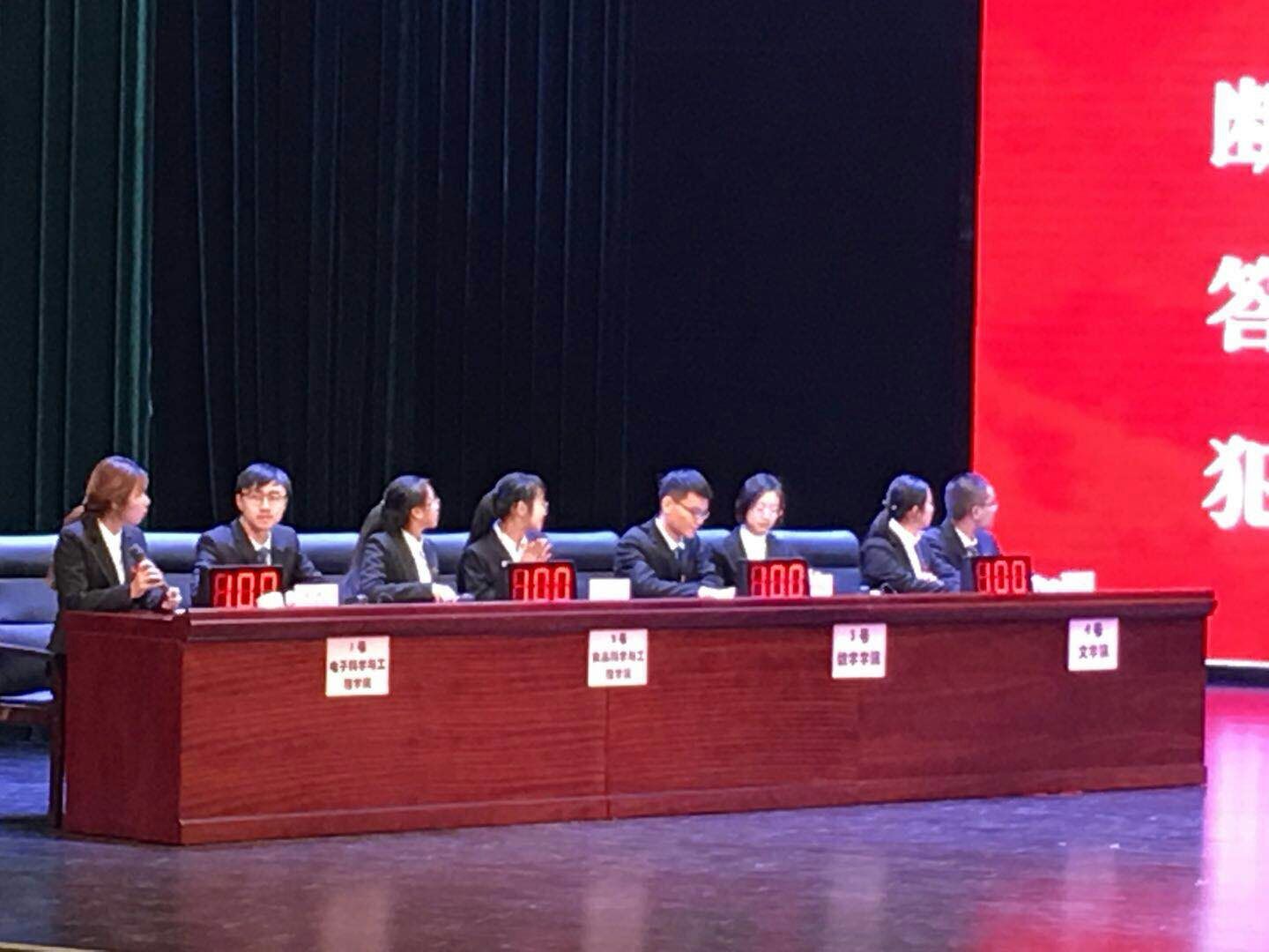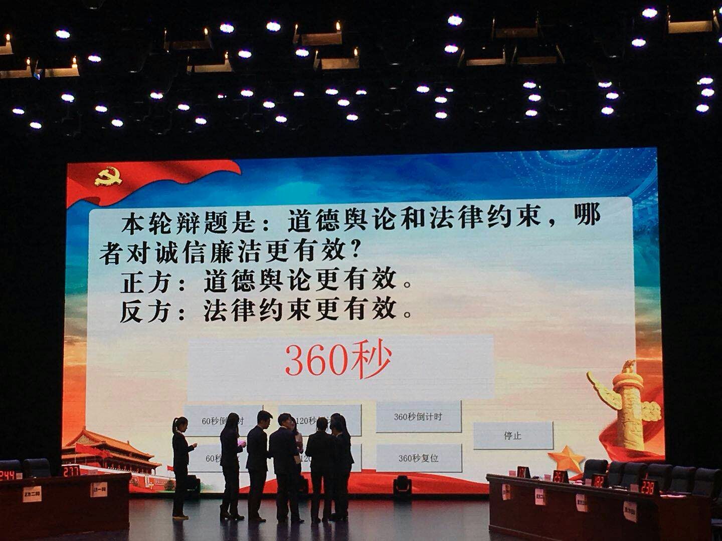 主持人阐述此次活动目的和意义后,比赛正式开始。第一轮为知识抢答环节,由30道选择题与20道判断题组成,题目以廉洁为主题、涉及中共现行廉政政策、国内外各项廉政法律条文等。比赛战况激烈,各支队伍抢答积极、表现活跃,比分交替增长。第二轮为即兴问答环节李玉涵就“作为一名学生党员,如何提高党性修养,加强学习型、服务型、创新型支部建设”进行了180秒的即兴回答,第三轮为主题辩论环节,题目为“道德舆论和法律约束,哪者对诚信廉洁更有效”。苗凯伦同学抽取反方一辩,陈述了在当前社会环境下法律约束要比道德舆论更具有时效性,更加的简洁高效。第四环节为主题猜词。40秒答题时间内,系统随机给出与廉政有关的成语、机构、罪名、影视作品,李玉涵同学描述,刘月同学猜词,两人配合默契,接连答对3题。第四轮为主题附加展示环节。秦雨萱、宋佳宁、李泉瀚同学进行了软笔书法及诗朗诵表演。五轮比赛结束后,b站