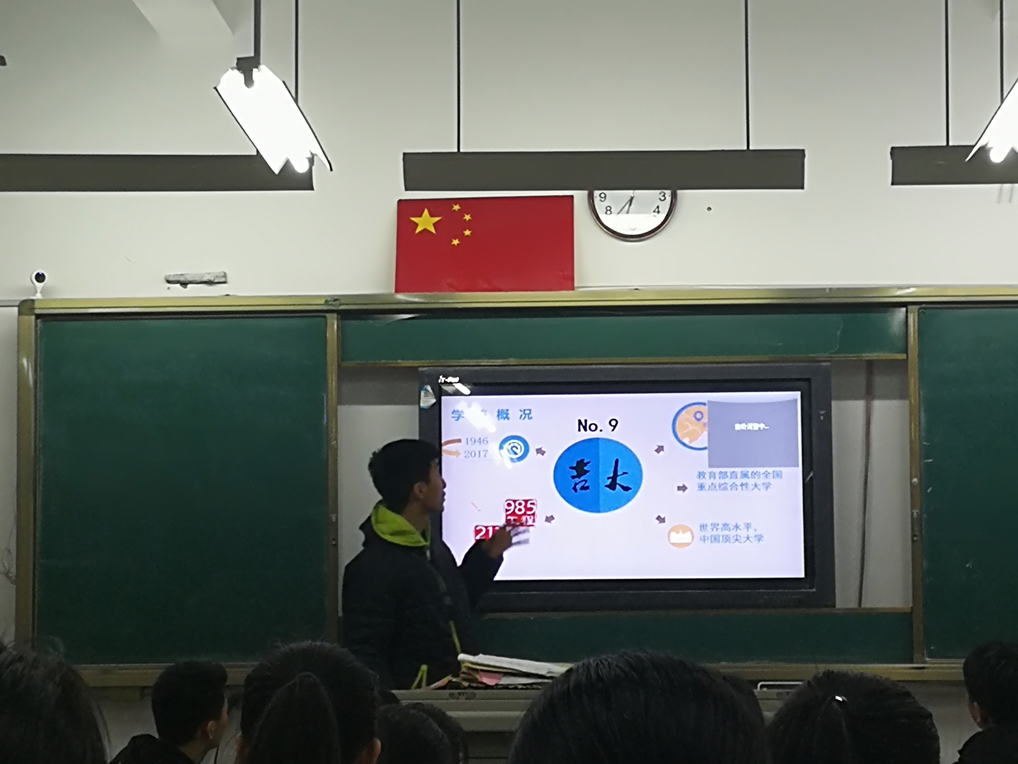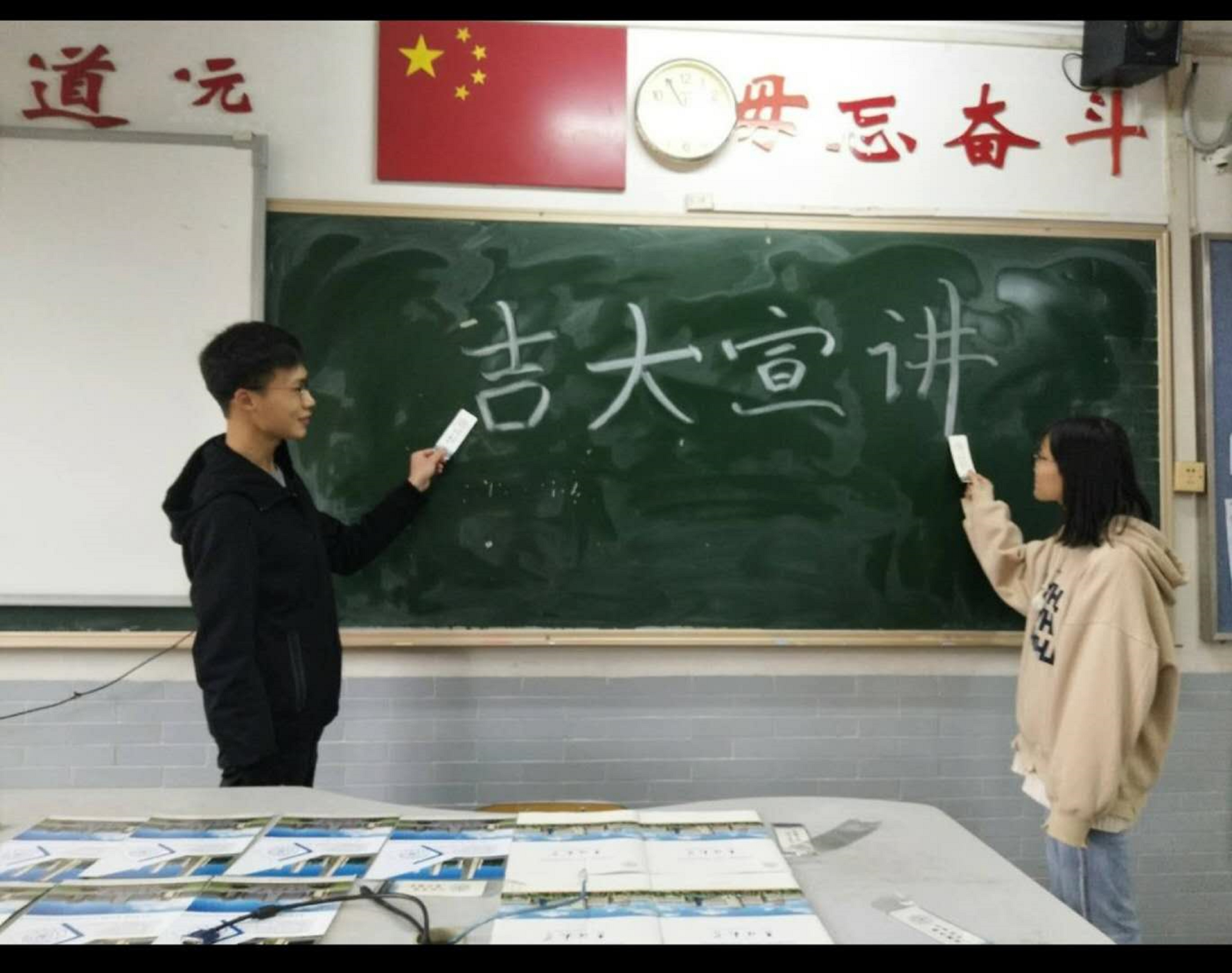 101705团支部在寒假期间派出六支宣讲队伍分别前往山东烟台经济技术开发区中学、成都郫都一中、山东省潍坊市临朐一中、石门中学、山西省郓城市康杰中学和河南三门峡市外国语高级中学参与宣讲。宣讲同学给所在高中的同学们发放吉大宣传册,在准备宣讲过程中家长和学生都十分认真的翻阅。以临朐中学为例,带领宣讲的同学带队在报告厅向母校高三学生宣讲吉大b站