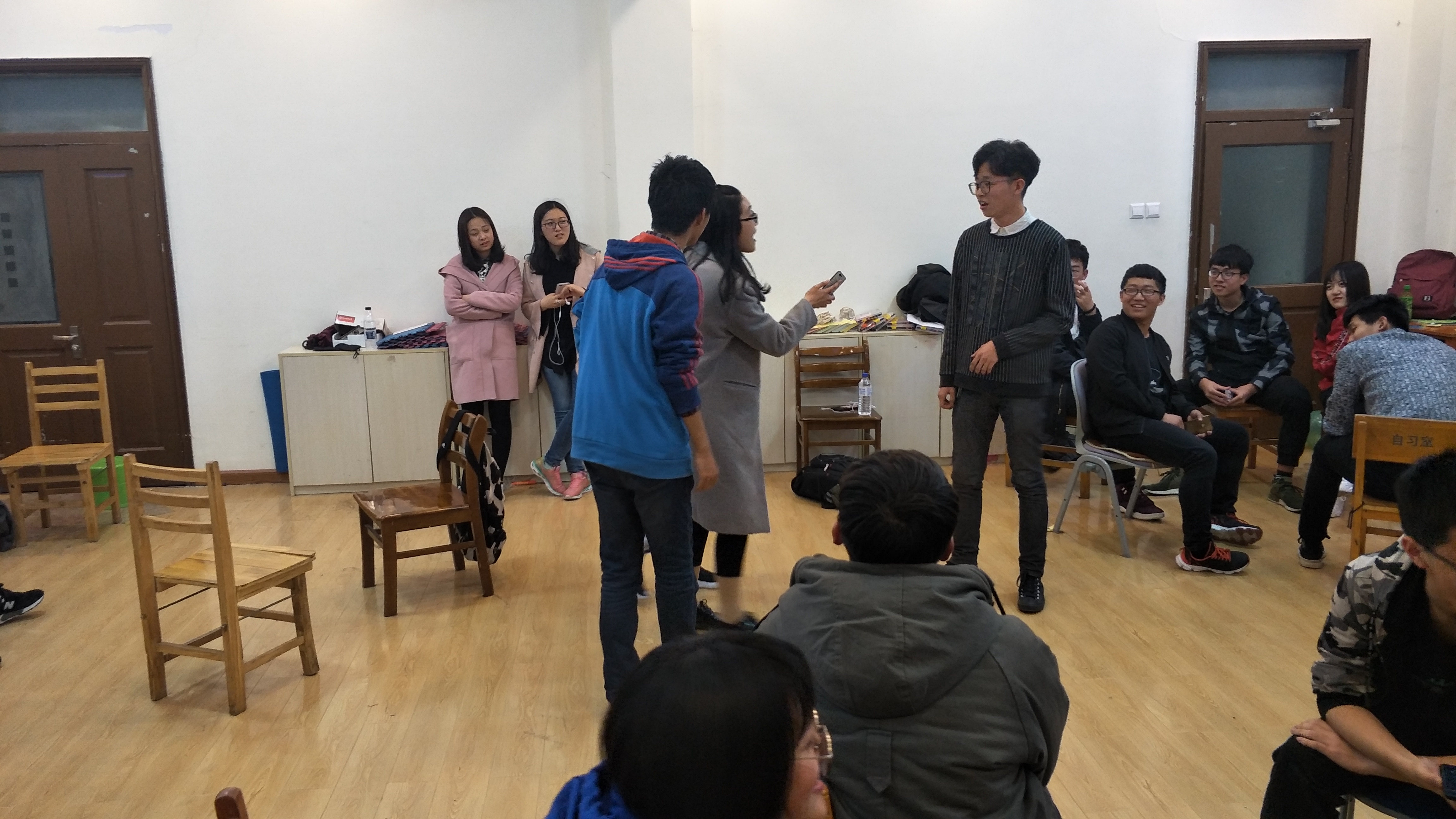在轻松活泼的氛围中,活动拉开了帷幕。活动伊始,主持人简介了此次活动的主题与目标,并从自己开始进行简短的自我介绍。新老同学们都踊跃发言,全身心地表达。活动在大家的积极发言中迎来了第一次高潮。随后进入了游戏环节,主持人妙语连珠,同学们积极参与。暖身小游戏“你比划我来猜”,将活动又一次送入高潮。同学们在游戏中得到身心放松的同时,也无形中增进了彼此间的默契。活动氛围也更加活跃。之后进行的是“保密原则”,大家伸出拇指,相互紧握,围成一个圈。当大家一起喊出“我会保密”时,同学之间的距离仿佛更近了。最后一个环节是情景剧的表演,各组同学在激烈讨论与充分地准备之后,为全班同学呈上了精彩的表演。大家在表演与随后的分享中内化此次活动的精神。活动迎来了最后的高潮。在同学们的掌声中,此次活动圆满结束!