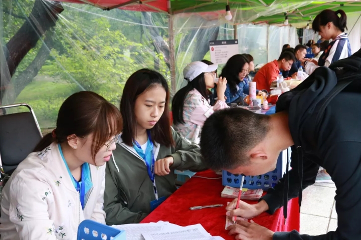 阴雨连绵也无法阻止新同学前来报到的脚步,同样无法熄灭老师和学弟学妹的热情。工作人员帮助新生们完成了入学签到、递交材料、领取钥匙和银行卡等报道流程,并和新同学们热情交流,认真地解答他们的疑问,让新生们尽快适应大学生活。