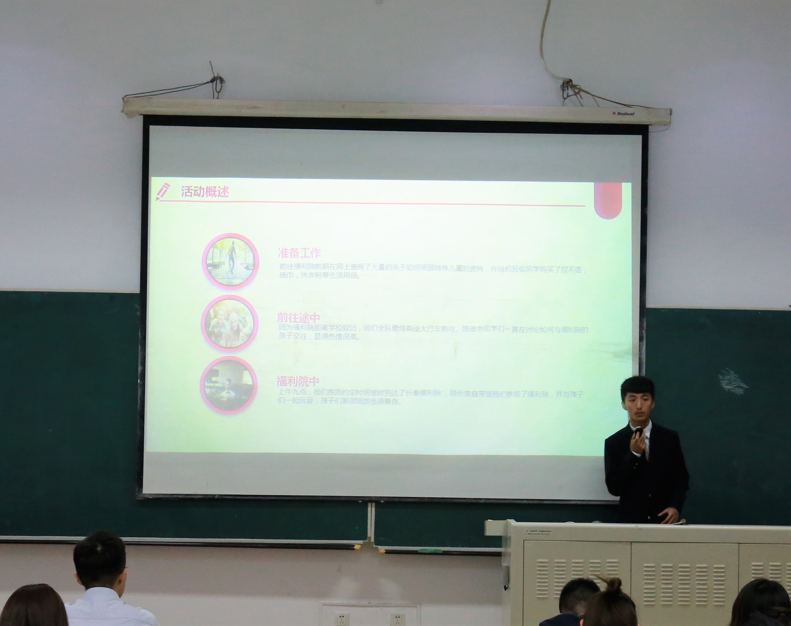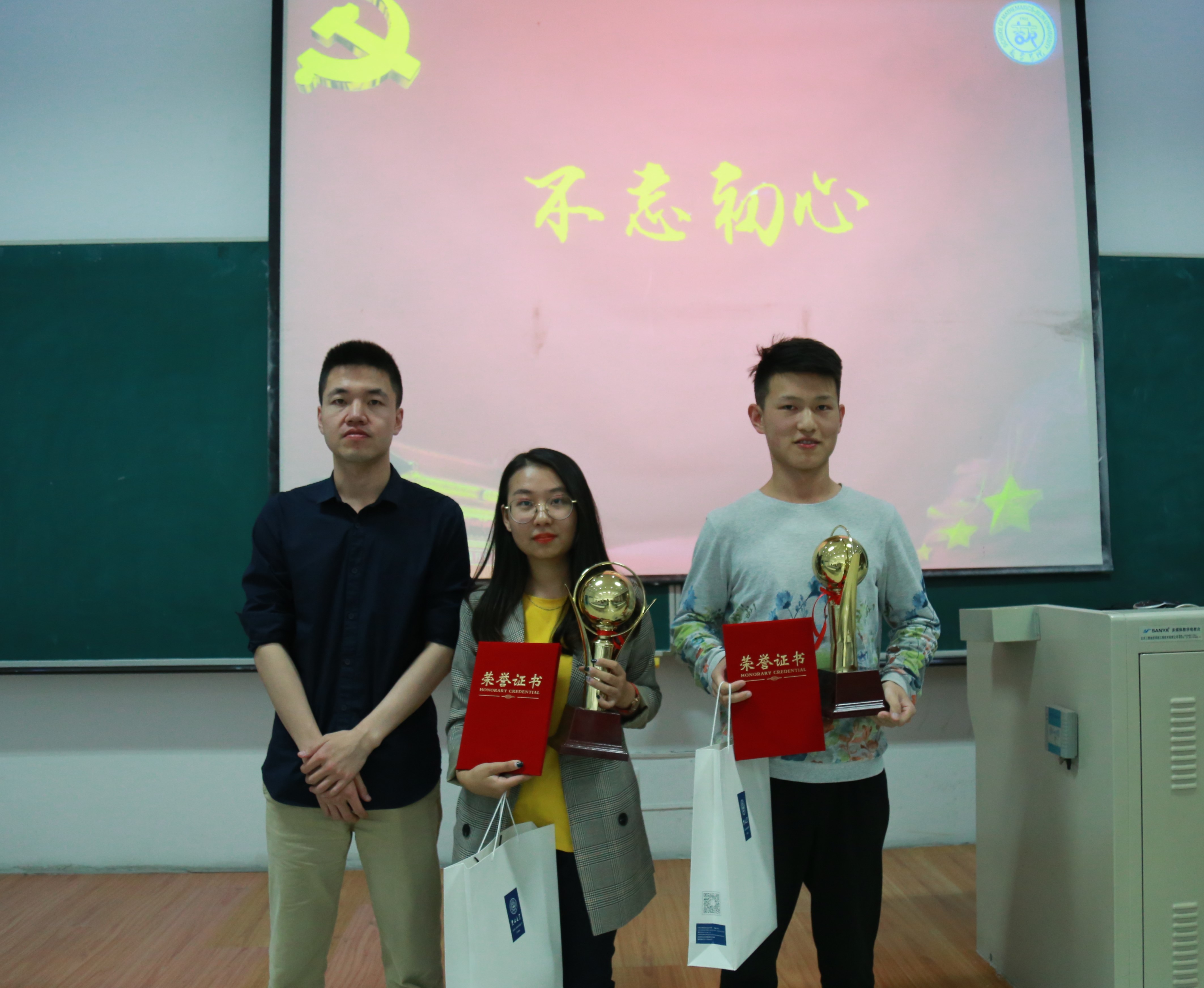 大会第二项:实践成果评比。在评比之前,先由主持人介绍了评比规则及奖项设置。评比规则:第一部分是活动前期b站 微信公众号投票,该分数占最终结果的百分之三十。第二部分是评委团评选分数:李庚老师以及主席团成员作为评审团给各代表队打分,该成绩占百分之七十。接下来各实践队代表上台展示了他们的实践经历以及成果。综合两部分的分数,共评选出一等奖两名,二等奖四名,三等奖三名。一等奖:小“数”林支教团以及b站 河南精准扶贫考察小组;二等奖:统计二班“心之小队”,计算一班“梦之队”,“追随总书记,重走初心路”学习团,计算二班“不忘初心”践行队;三等奖:数一&金数吉商志愿团、数应二班红色宣讲团 、统计一班爱心接力志愿者团。由团委书记李庚老师、团委副书记兼社团联合会主席郑旭东、团委副书记李潇琦、学生会主席邱韵分别为获奖队伍颁发奖杯,荣誉证书以及奖品。