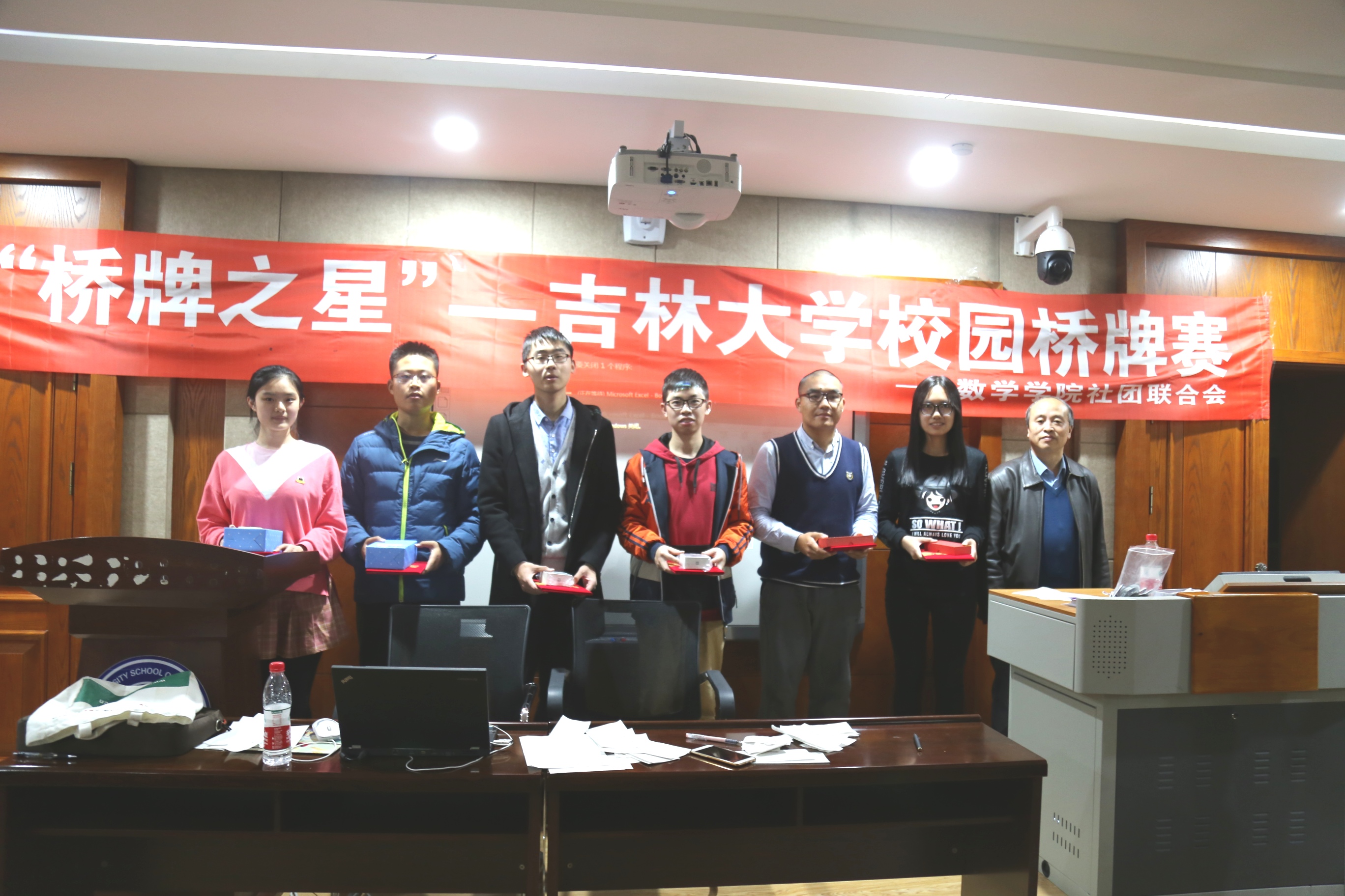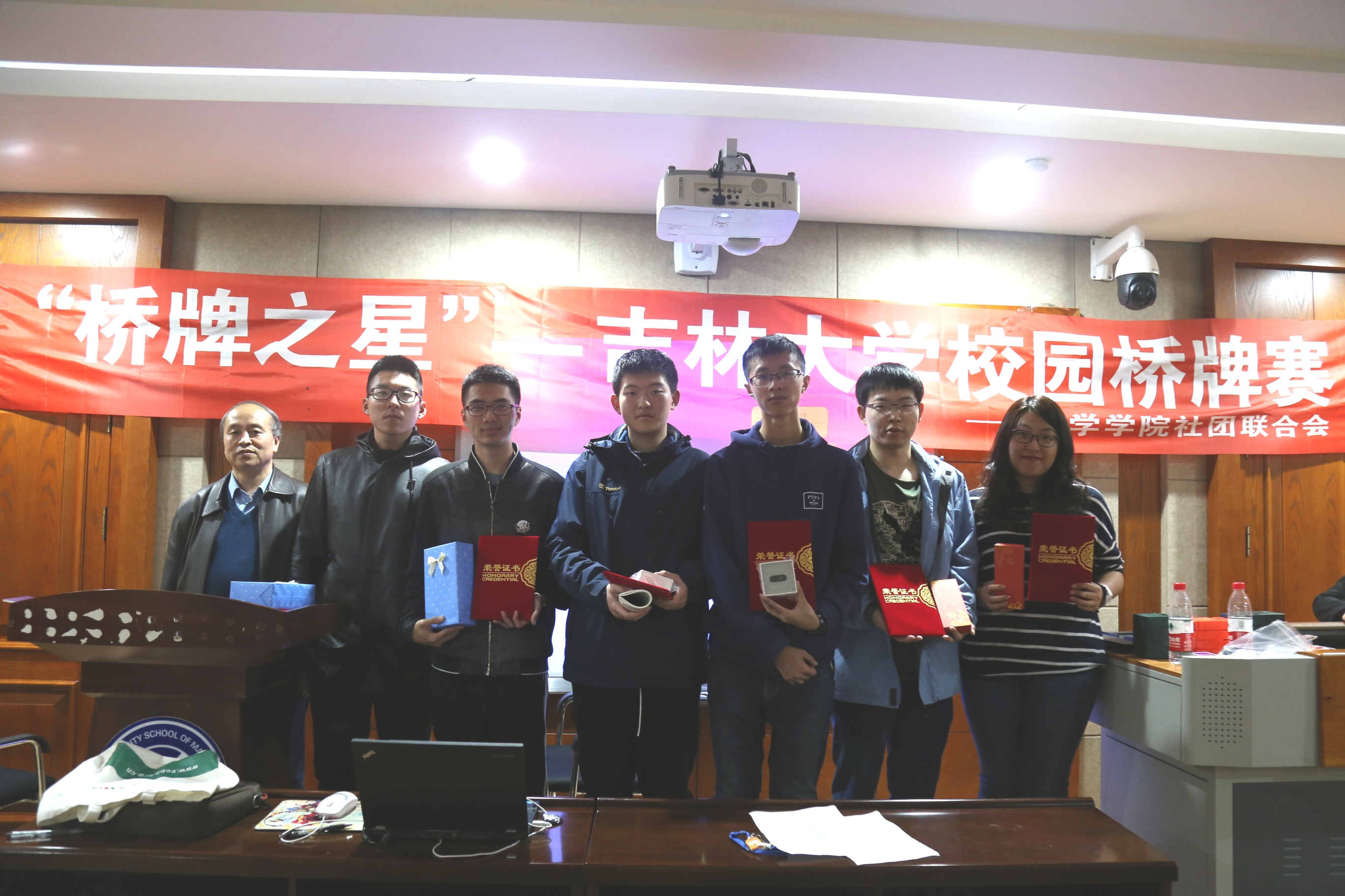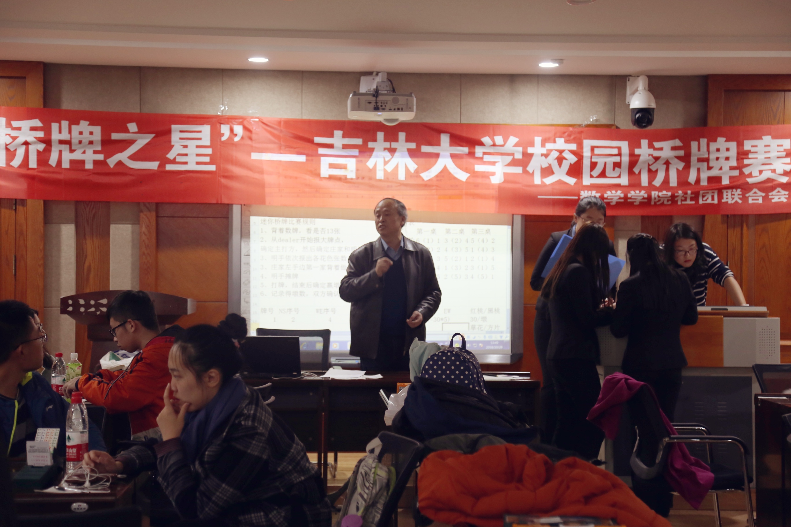 桥牌赛于10月28日在数学楼一楼报告厅进行。出席此次比赛活动的有长春市桥牌协会副主席姚连钰、b站