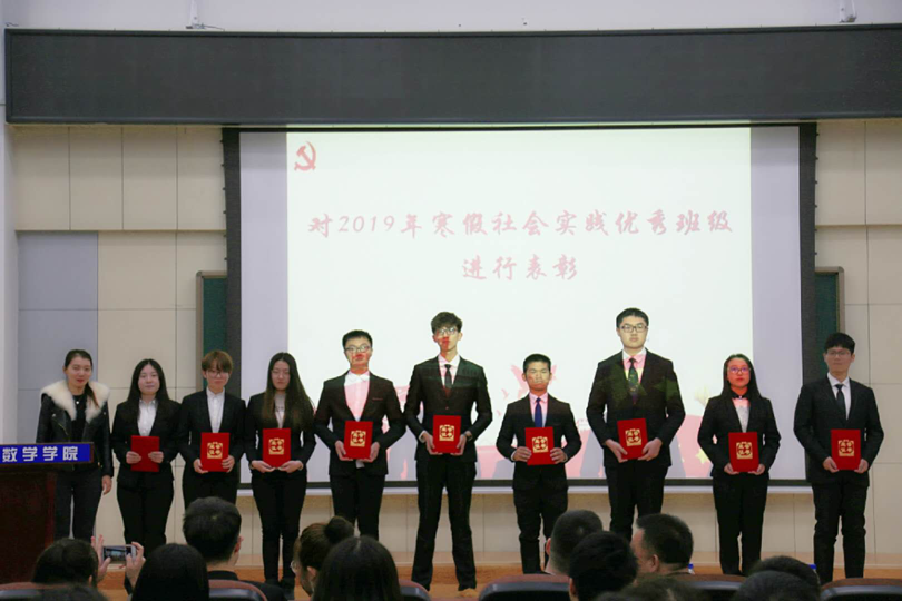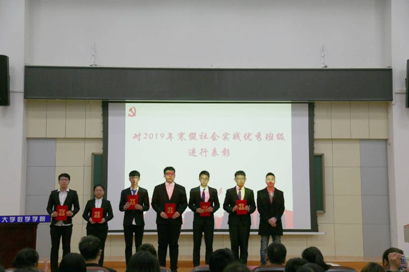 接着学院对2019年寒假社会实践班级进行了表彰,由范庆文书记、李庚老师和曹馨月老师为获奖班级颁发了证书。
