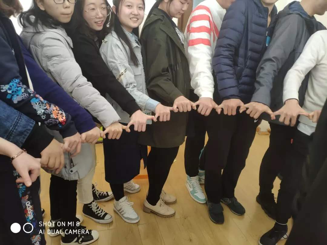 团委心理健康部组织大一各班同学开展以“心灵沟通”为主题的心理班会。此次班会由心理部副部和部员采取“一带二”的形式共同主持,主要以游戏的形式展开。
