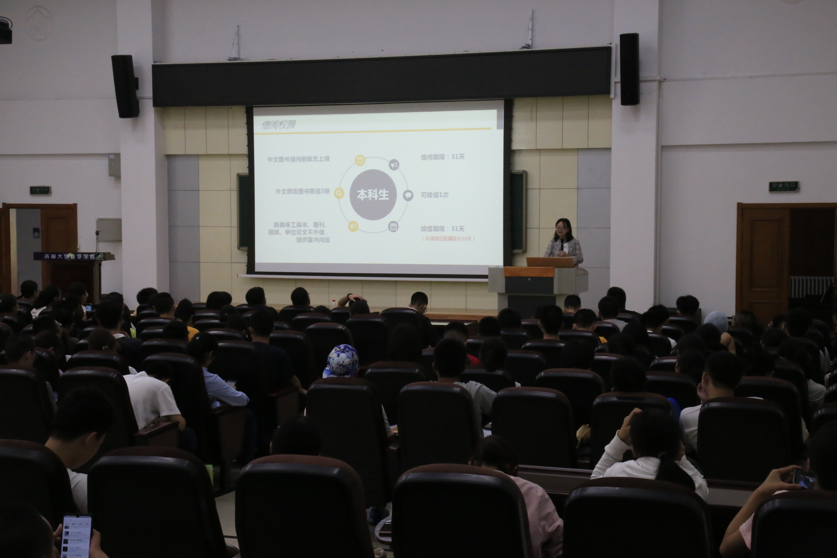 于2019年8月27日上午九点五十在数学楼二楼报告厅开始了新生入学图书馆教育课程。