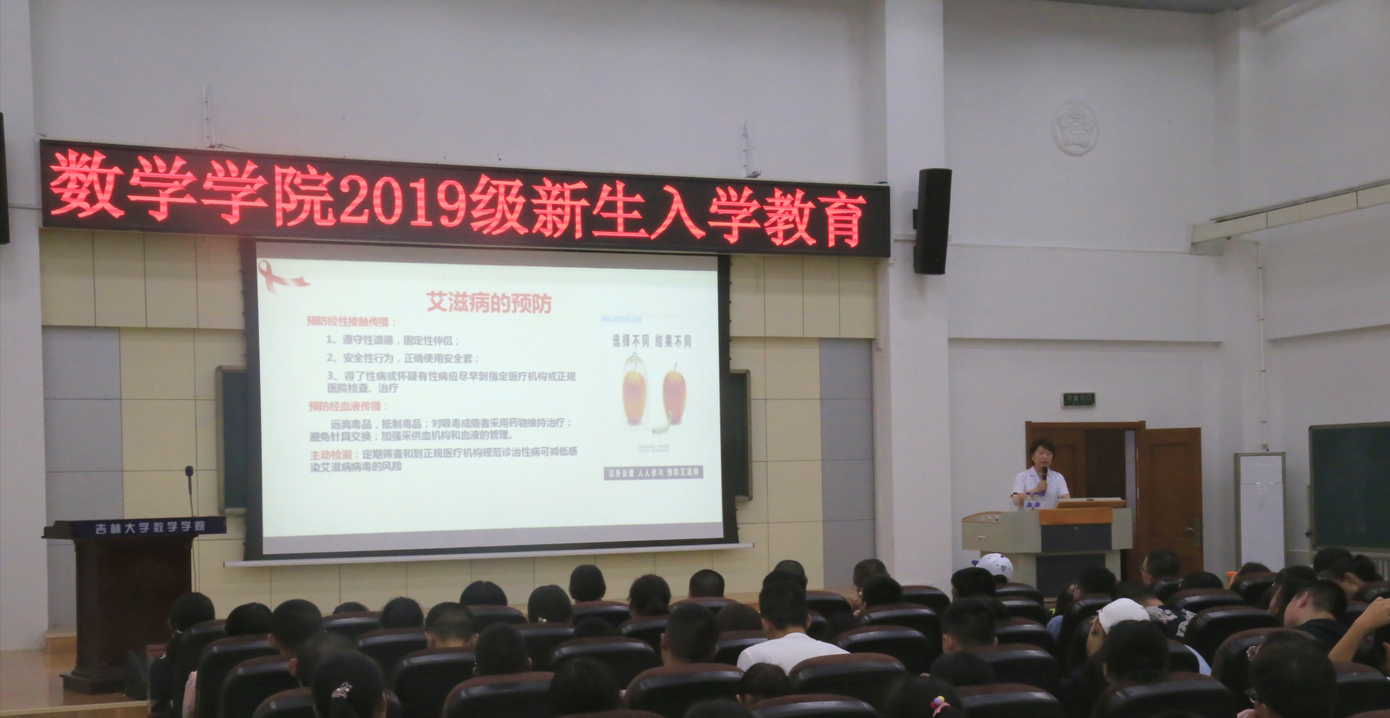 为了更好地方便新生们的生活,2019年8月28日,我院邀请到校医院的任艳蕾老师于数学楼二楼报告厅为2019级新生进行卫生保健教育。