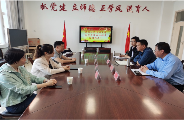 行政副院长王浩百、行政综合办公室主任朴素、学科与科研办公室主任金鑫、概率统计与数据科学系高丽媛同志赴青海师范大学数学与统计学院慰问了我校挂职教师、博士服务团成员董志山同志,青海师范大学数学与统计学院书记鲍洪武、副院长陈占寿参加了座谈,双方就学科培养、党建工作等进行了广泛深入的交流。