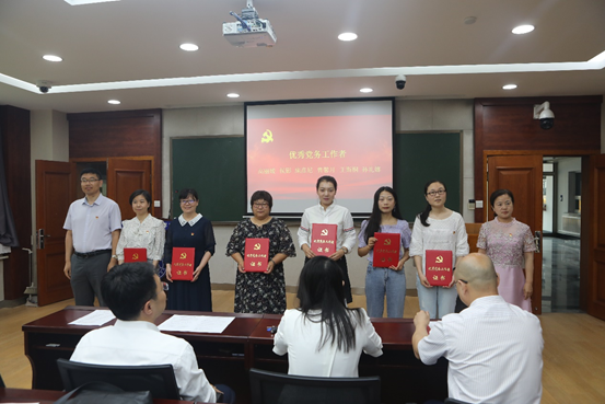 副院长王浩百、党委委员孙毅、纪友清、中心副主任徐向红为获得优秀共产党员的14名同志颁发了荣誉证书。