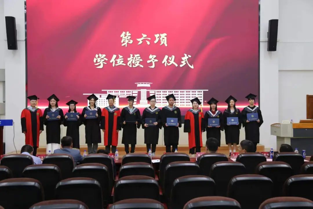 在庄严肃穆的国歌声中,典礼拉开序幕。副院长韩月才和党委副书记兼纪委书记陈续升分别宣读本科生和研究生毕业名单。副院长王浩百宣读优秀毕业生名单。党委书记王春朋为优秀毕业生颁奖。院长张然、党委书记王春朋、学位评定分委员会主席邹永魁为获得学位的毕业生拨穗正冠并授予学位。
