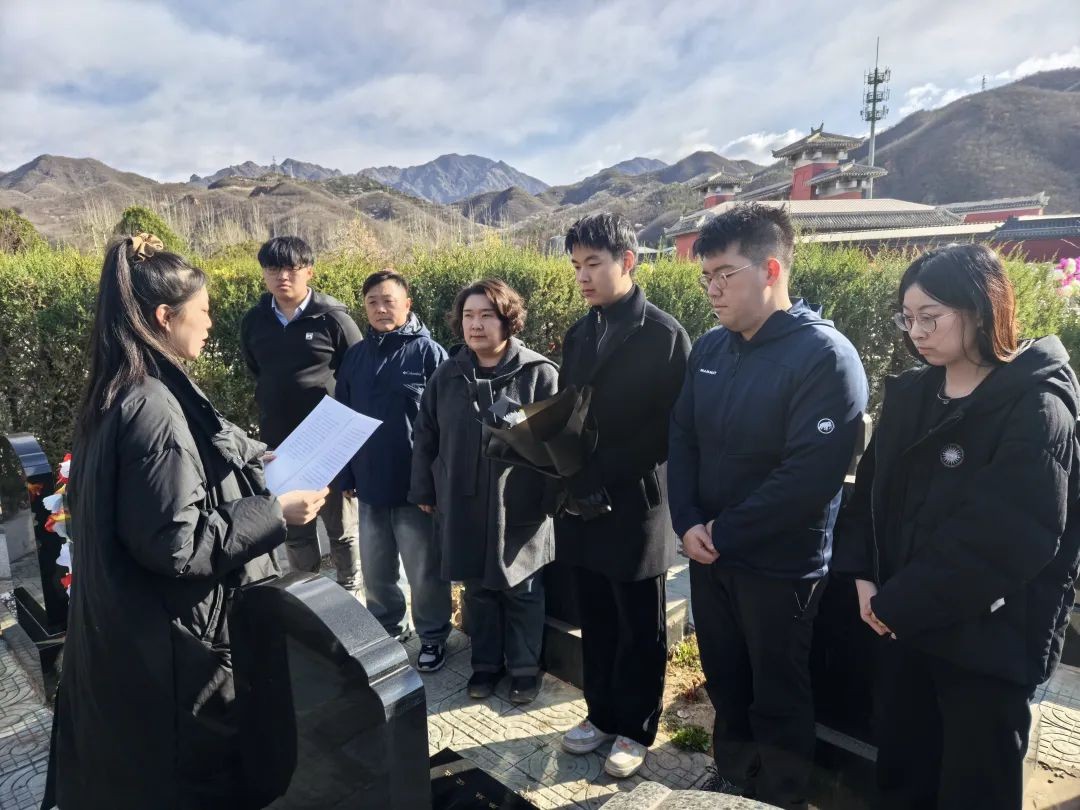 师生代表前往北京市昌平区凤凰山陵园,祭扫杰出校友赵悦女士及其父母墓地。学院副院长王浩百、行政综合办公室主任朴素、本科生辅导员戴雨桐作为教师代表、“赵悦奖学金”获得者作为学生代表参加了此次缅怀仪式。