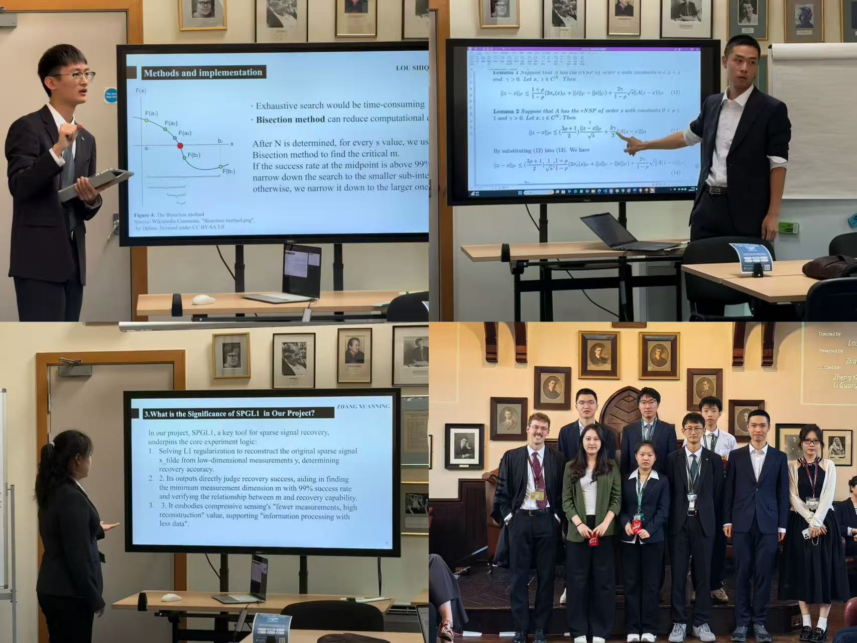 在本次暑期学校行程中,剑桥大学乔西·萨伊尔(Jossy Sayir)教授与安德斯·汉森(Anders Hansen)教授带来了精心设计的教学内容。课堂上,教授们以深入浅出的方式传递抽象代数、算法可靠性等专业知识,通过“Lecture+Supervision”的剑桥特色模式,引导学生结合通信系统编码、医疗AI等实际场景展开深入探讨,师生互动氛围热烈而融洽。配套的小组工作坊与课题研究为学生巩固理论知识、提升实践应用能力提供了有效助力,同学们通过团队协作进一步深化了对课程内容的理解。学习期间,师生们积极与当地学者、学生通过Fellow Seminar、Fellow Activity等形式开展跨文化学术交流,拓宽了学术视野与交流渠道。项目后期,学生以小组形式完成课题成果汇报进行Final Evaluation,通过考核后参与闭幕式,顺利结业并获得由授课教授签名的官方证书及项目成绩报告。