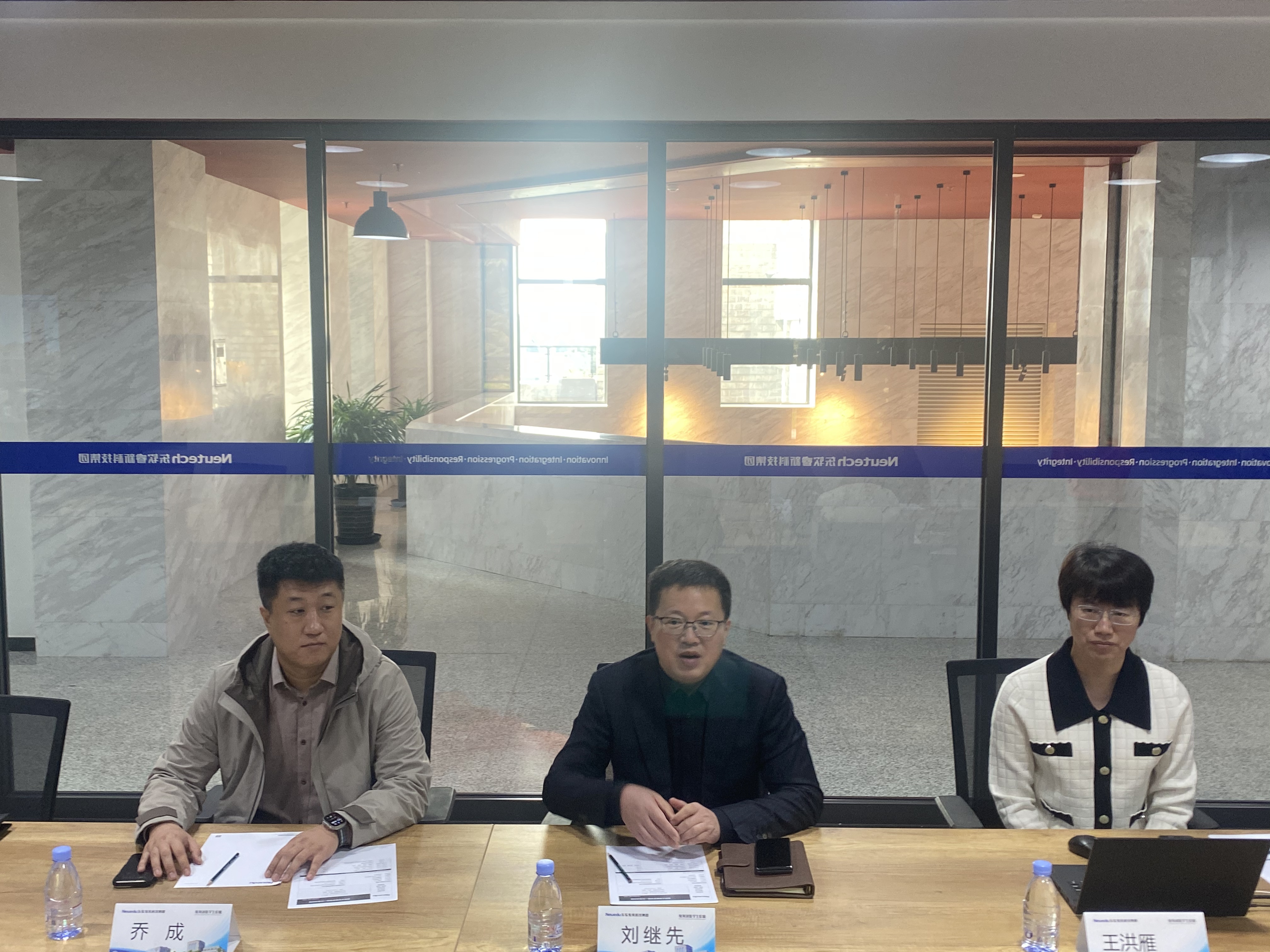 刘继先对吕培庆书记一行的到访表示热烈欢迎,并介绍了东软睿新科技集团所构建的“教医养”一体化智慧融合生态,以及东软教育在产教融合领域的深厚积淀。他指出,校企合作是推动教育与产业深度融合的重要途径,希望双方以本次合作为契机,深度整合校企资源,重点推进共建产教融合人才培养体系、共享型实训基地、“双师型”教学队伍以及协同育人机制等项目,共同打造区域产教融合创新示范基地,为区域经济高质量发展提供有力支撑。