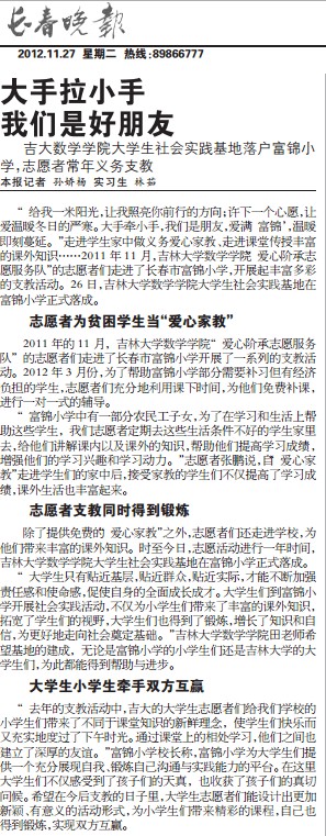 《长春晚报》今年第4次报道b站 社会实践与志愿服务活动