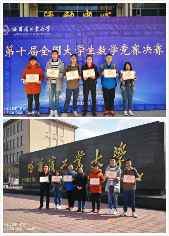 第十届全国大学生数学竞赛决赛日前在哈尔滨工业大学落下帷幕,我校有6名同学在预赛中因成绩优异而获得此次决赛资格,最终在决赛中喜获非数学组一等奖1名、非数学组二等奖2名、数学低年级组二等奖2名、非数学组三等奖1名。