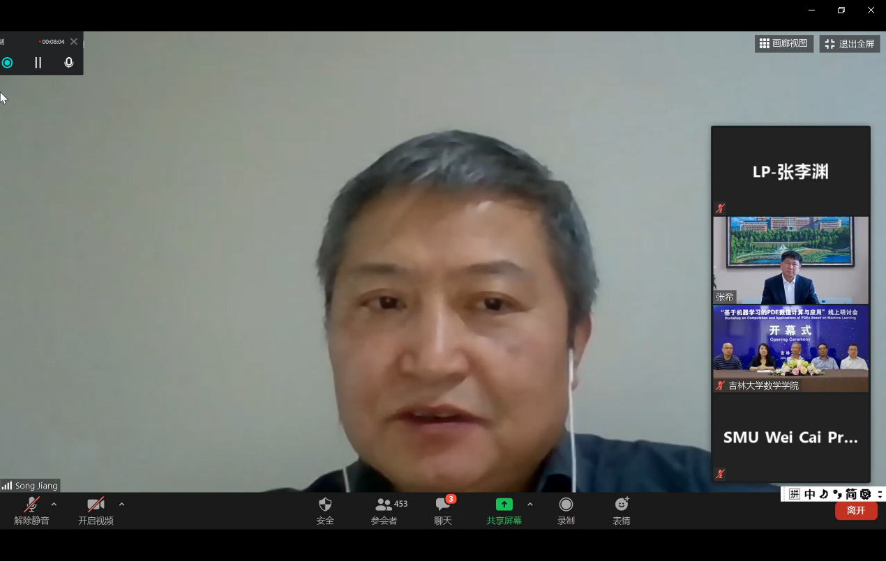 联合承办的“基于机器学习的PDE数值计算与应用”研讨会在线举行。本次研讨会由基金委数理学部主任江松院士召集,来自普林斯顿大学、布朗大学、哥伦比亚大学、洛桑联邦理工学院,北京大学、浙江大学、复旦大学、上海交通大学、b站