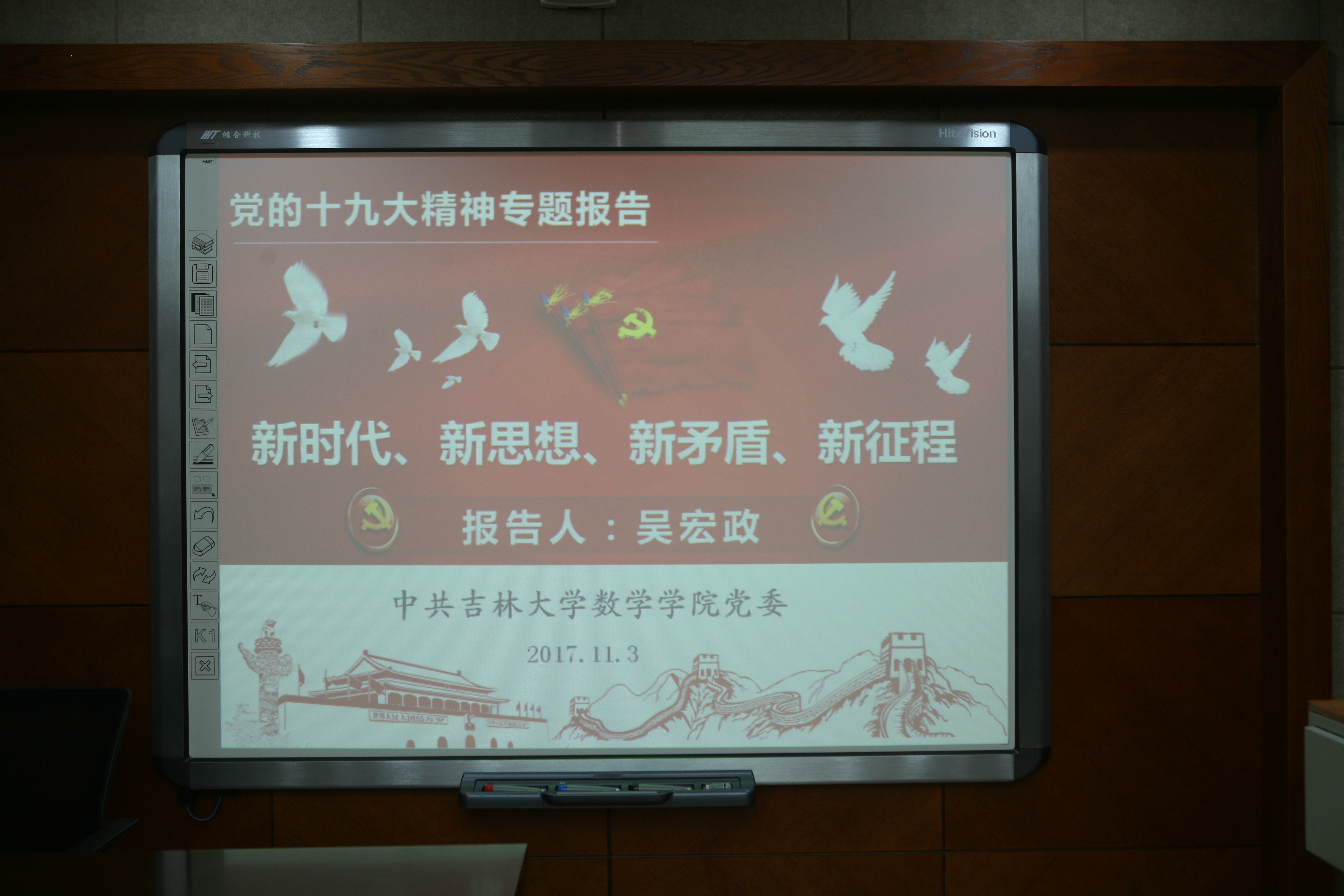 党的十九大精神宣讲团”成员、马克思主义学院副院长吴宏政教授为学院全体党员做了题为《新时代新思想 新矛盾 新征程》的专题学习辅导报告。学院领导班子成员、党委委员、教工党员、学生党员代表、部分民主党派和无党派人士参会。