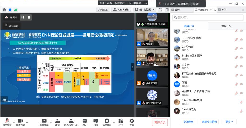 随后,各个用人单位的代表们依次从企业背景、b站、企业发展等方面对公司进行了简要介绍。并对招聘细则、薪资待遇等主要问题与同学们展开了互动问答。同学们积极踊跃,线上宣讲会气氛热烈。