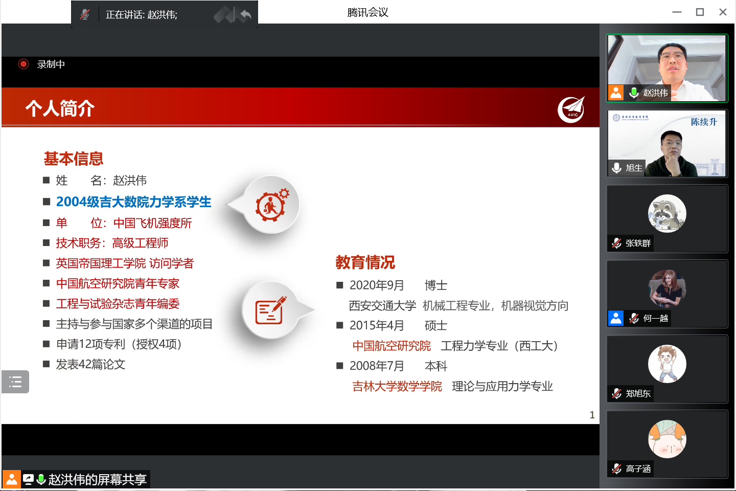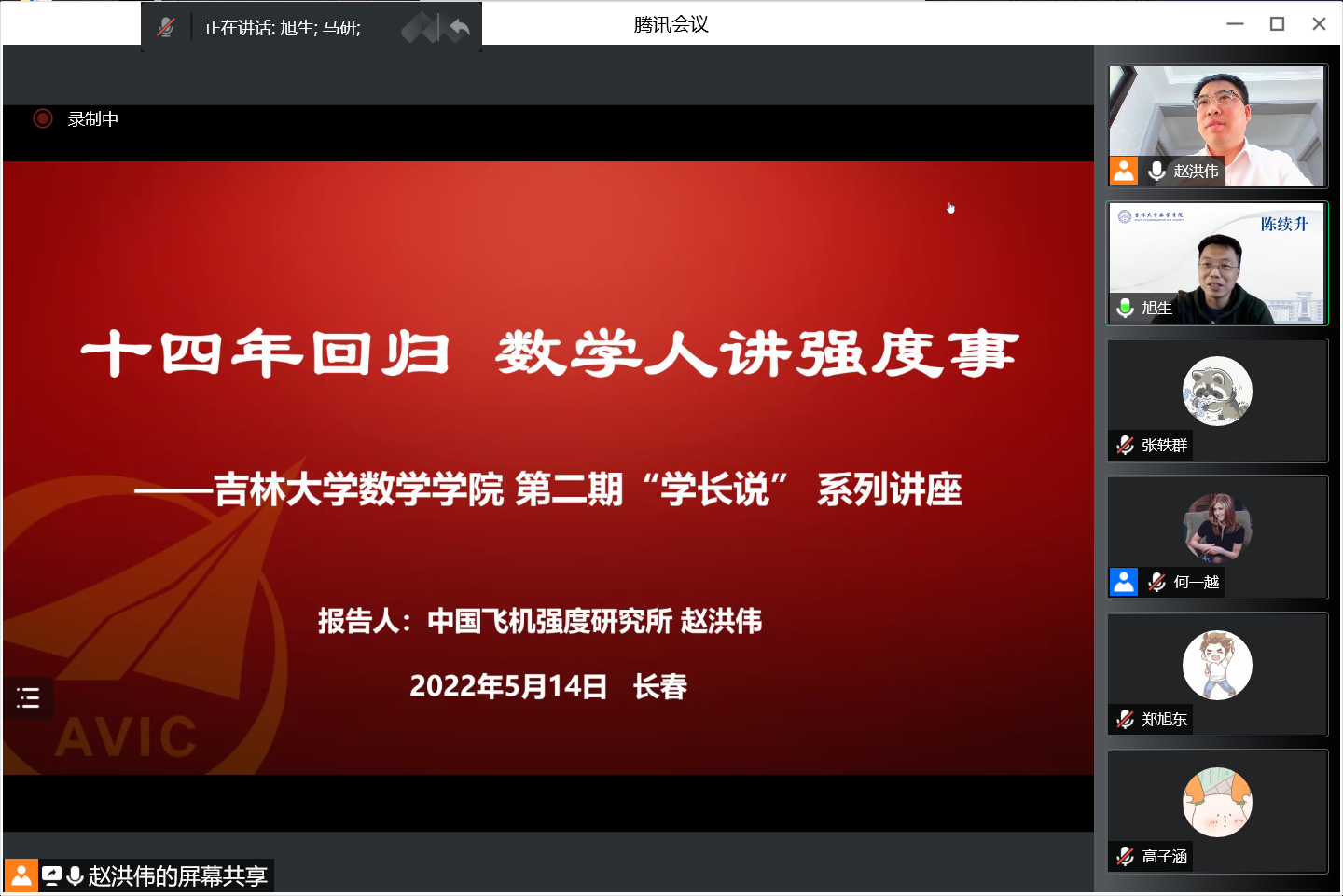 研究生“学长说”系列活动第二期之“十四年回归 数学人讲强度事”于2022年5月14日18时成功举办。本次活动特邀嘉宾为中国飞机强度研究所的赵洪伟老师。b站