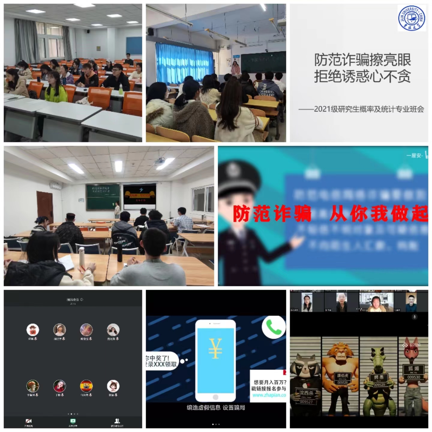 研究生各班级通过开展班会、团会,以观看宣传视频、案例剖析等方式,为学生们普及了当前“花样百出”的诈骗方式,详细讲解了各种实用反诈技巧。围绕近期校园发生的真实案例,向大家细致剖析网络诈骗的套路,以案例作为警示,叮嘱大家不要轻信陌生人,不要给陌生人转账,牢牢守住自己的“钱袋子”。提醒同学们在生活中注意保护好个人隐私,切勿轻易透露自己和家人的身份证、银行卡号、密码等信息,一旦上当受骗,要保存好相关证据信息,务必第一时间向公安机关报案。此外,还向同学们介绍了“国家反诈中心”APP,说明其防诈骗功能的实现方式,号召大家积极下载安装注册。