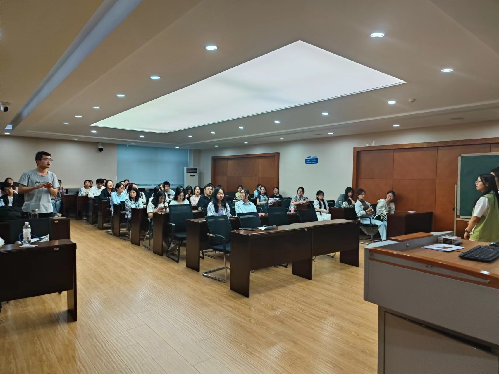 赵雯晗学姐向我们分享了包括确定目标、信息收集、简历制作等考试前的准备工作;考试中的投简历、听宣讲、考试报名及报名技巧、面试技巧等,同时学姐也提到,与考试单位进行待遇、职称等沟通也是非常有必要的。刘娟学姐向我们分享了在前期准备中如何梳理求职意向、明确求职目标、查询招聘信息以及制作简历;介绍了如何提升面试技巧;详细地讲述了长春市“强师计划”的申报流程,为同学们提供了很大的帮助。