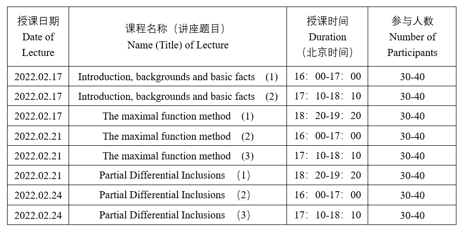 讲座题目:Some Methods for Vectorial Calculus of Variations and Partial Differential Inclusions