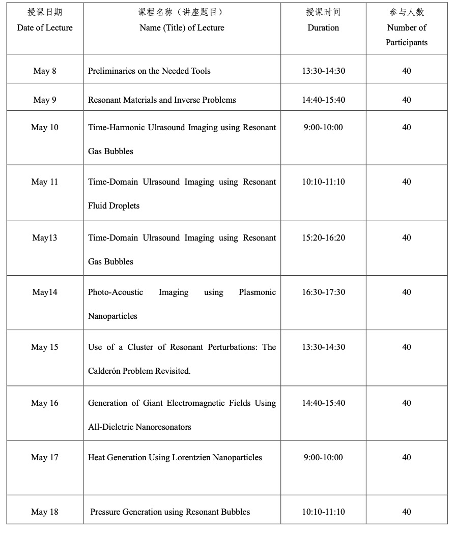 课程题目:Mathematics of Imaging Modalities Using Resonant Contrast Agents