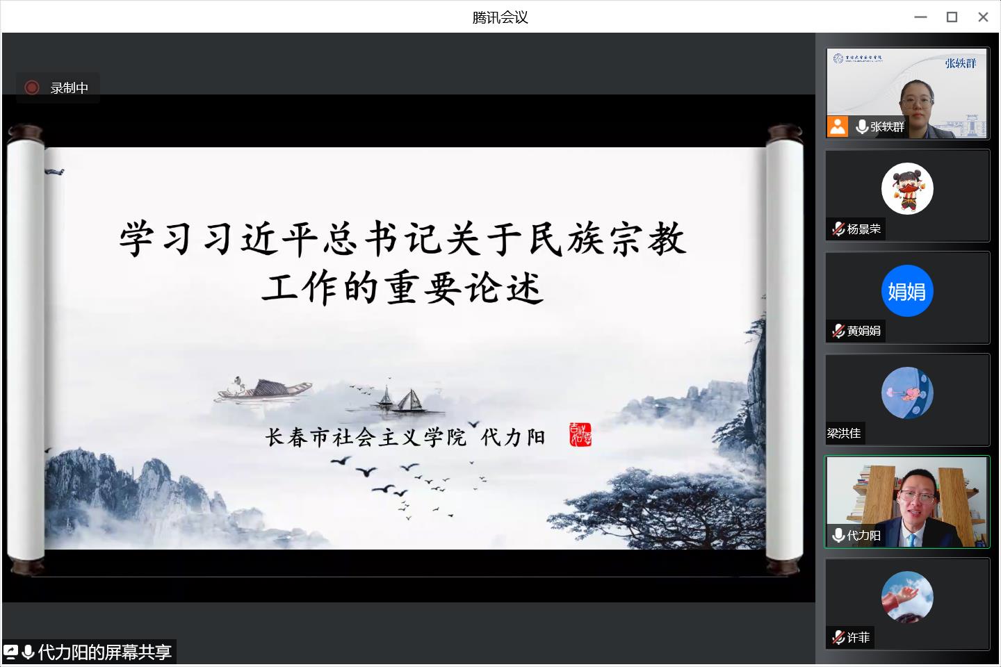邀请长春市社会主义学院代力阳老师在线开展了宗教政策宣讲教育讲座。本次讲座由b站