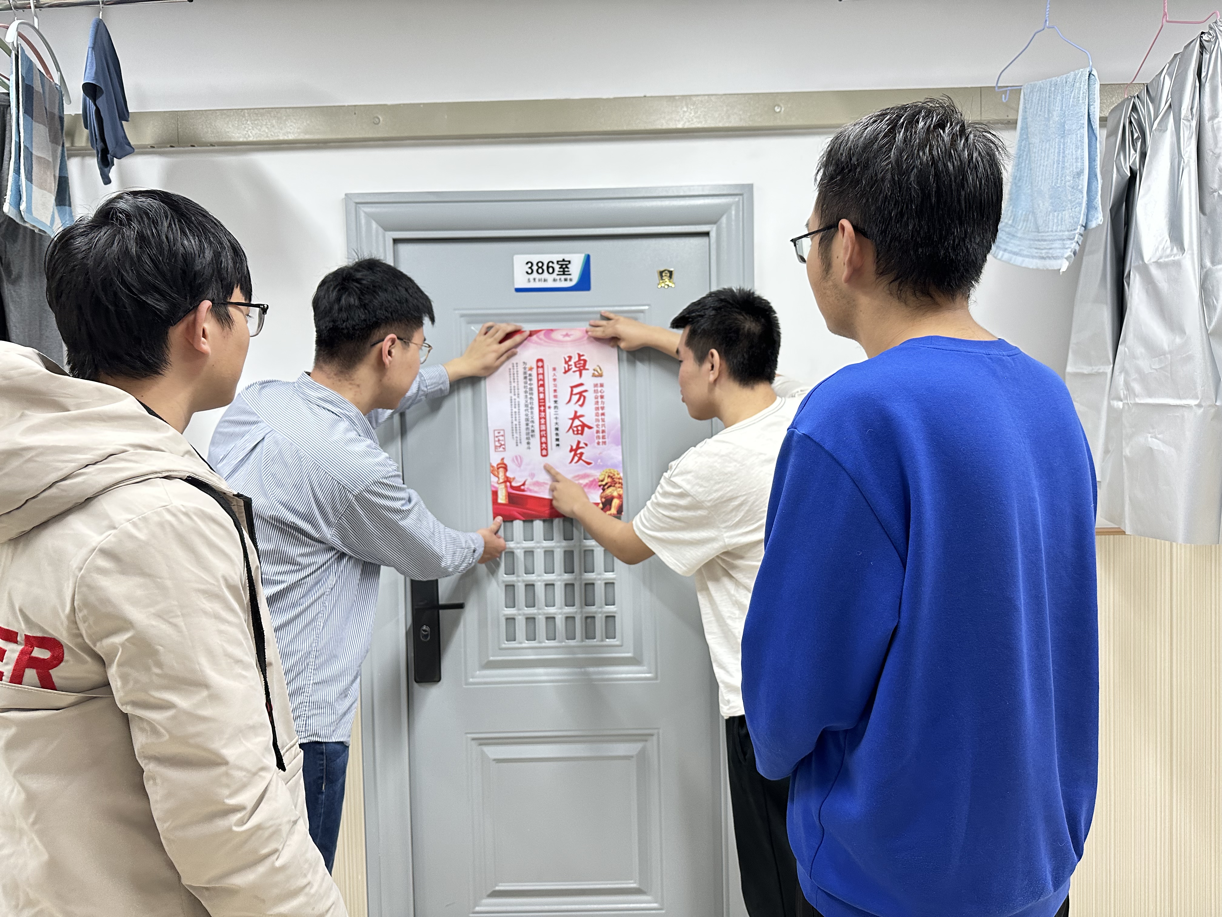 研究生迎接70周年院庆系列活动之(二)二十大精神学习进寝室活动,学院研究生党员和入党积极分子走进各研究生寝室,与同学们共同学习分享二十大精神,将二十大学习教育引入学生寝室。