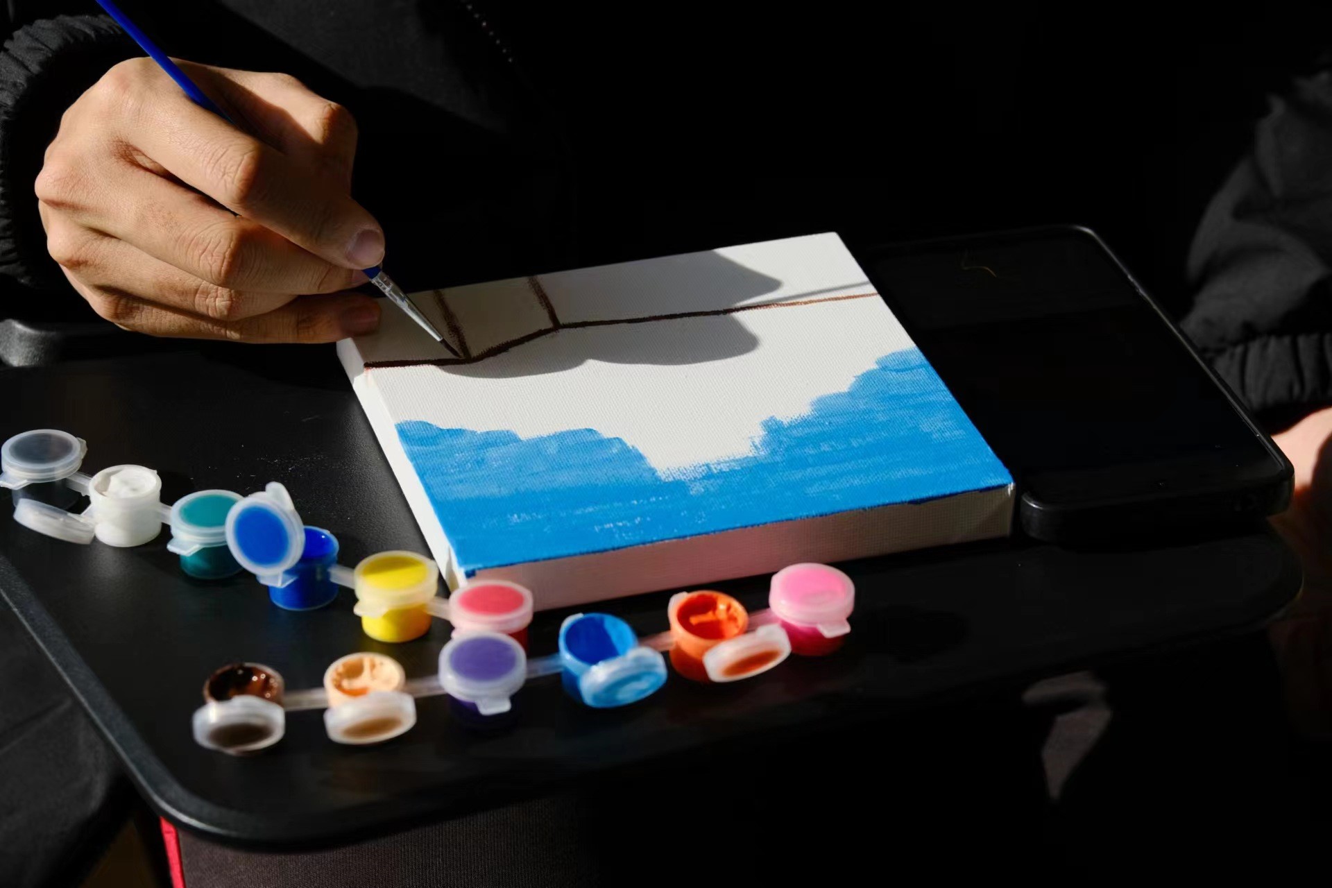 此次活动从早上8点持续到晚上9点,活动对每位同学的创作时间没有限制,这也使得同学们可以尽情体验心流创作,达到与自己内心深处交流的目的,每一幅作品都是同学们心灵的表达,承载着同学们对生活、对艺术、对未来的独特理解。