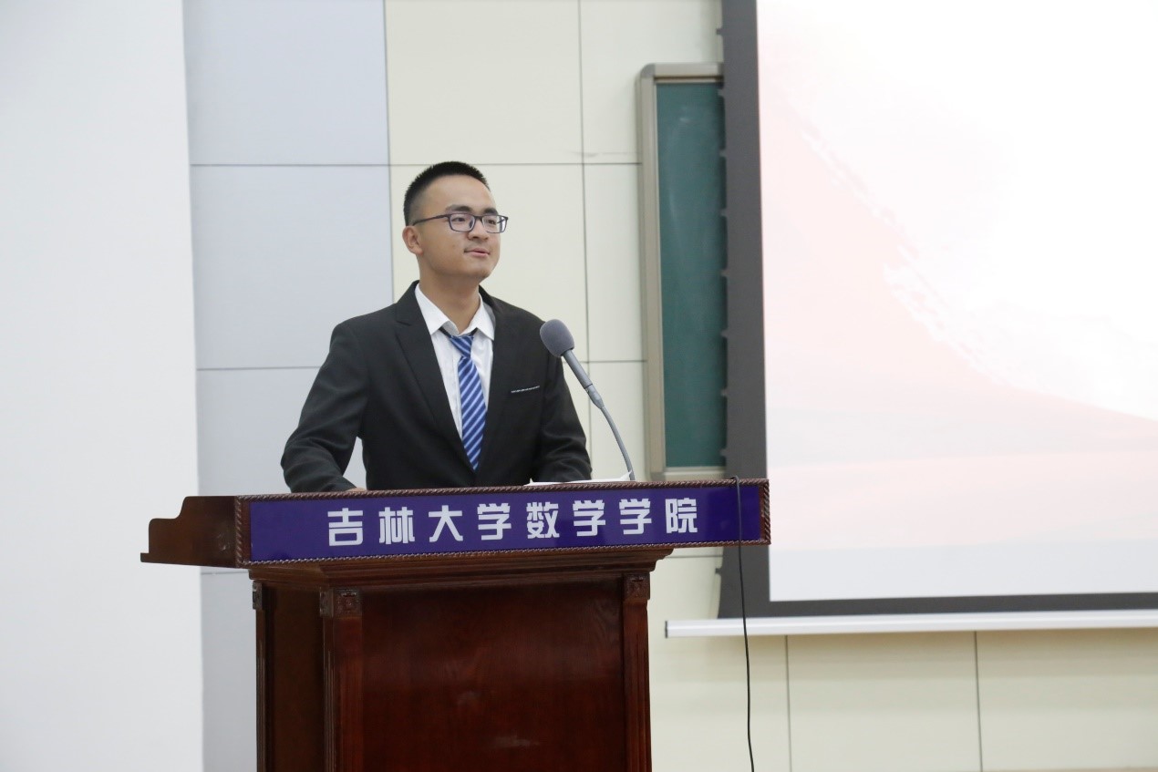 接下来,2019级本科生王倍沣作为新生代表发言。王倍沣同学慷慨激昂的演讲,让我们感受到新同学对大学生活的期待与向往,让我们相信数院19级的同学有九天揽月的志向。我们相信他们定会不负韶华,砥砺前行。
