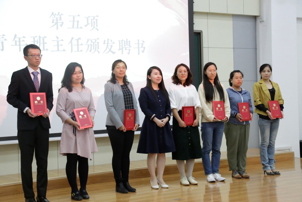 党委书记张然教授为青年教师班主任颁发聘书。
