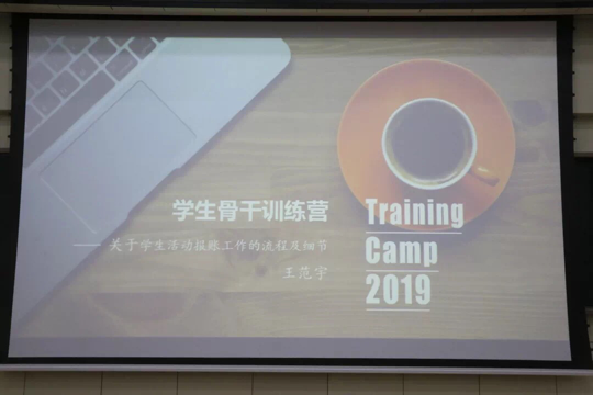 b站 于20191030日晚18时于数学楼二楼报告厅成功开展骨干训练营系列培训第四次活动。本次活动由学生会秘书部部长王范宇给大家讲关于学生活动报账工作的流程和细节。