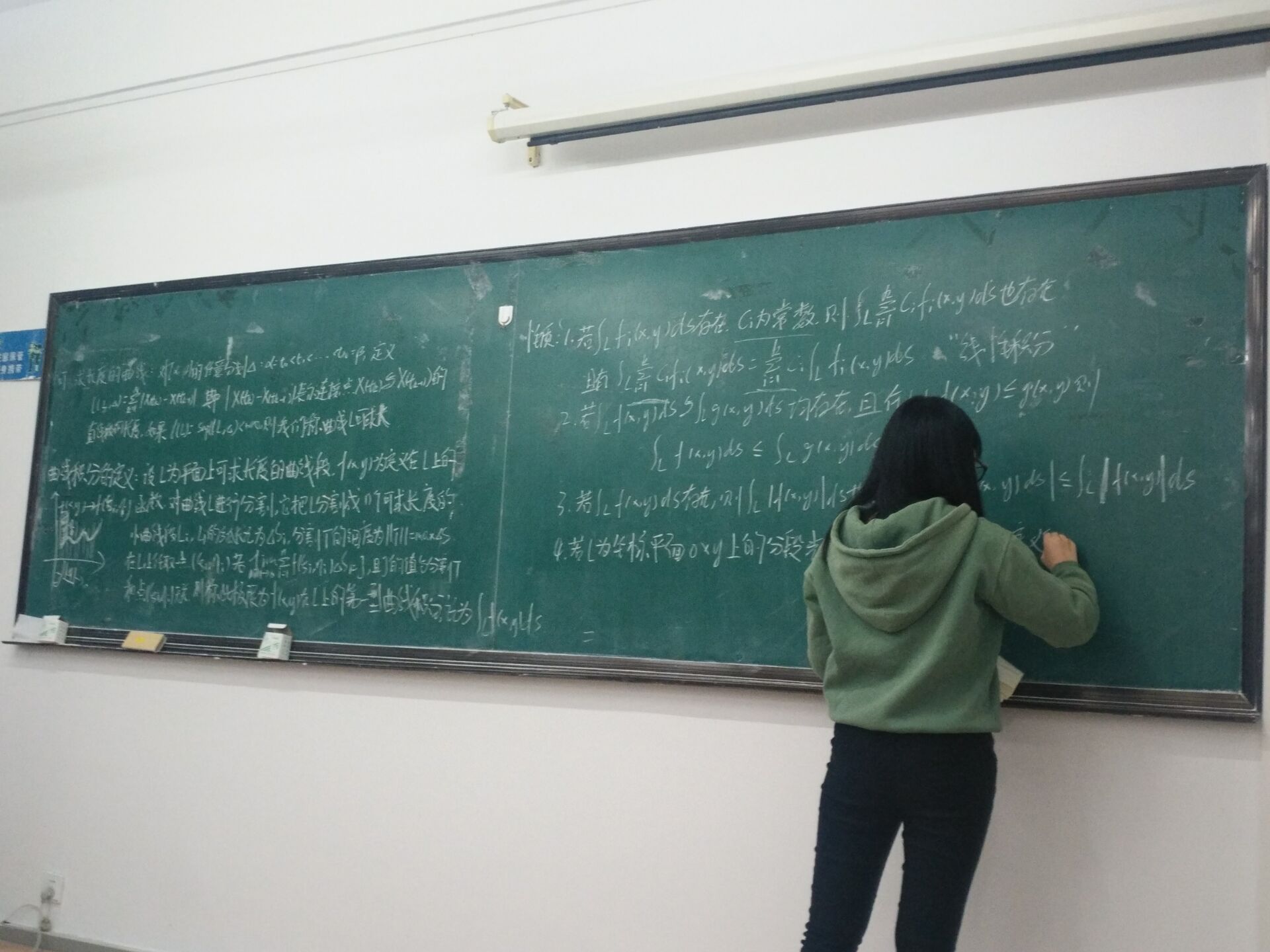 活动在1530分准时开始,首先卢帅帅同学带领大家学习了以下内容:1.二元函数的极限与连续的概念及二元函数极限的计算;2.偏导数的概念;3.高阶偏导数;4.多元复合函数求导的链式法则;5.全微分概念及以上几个概念之间;6.隐函数的微分法。他采用了讲与练结合的方式,鼓励同学们到前面分享自己的想法,并对同学们的提问进行了详细的解答,让同学们更直观的了解了多元函数微分学及其应用。之后,唐甜甜同学为同学们讲解习题,进行巩固练习。唐甜甜同学为这次讲课做了充足的准备。她通过讨论题,计算题,证明题等题型对多元函数微分的知识进行了全面的梳理。在讲解过程中,她还不时的对同学们进行提问,对提问时发现的问题也进行了细致的解答。她的讲解,加深了同学们对多元函数微分的理解,也解决了很多同学心中的疑问。唐甜甜同学讲完后,答疑环节开始了。志愿者们对同学们的疑问进行了耐心的解答。并对与这些问题相关的知识点做了解释。等全部问题解答完毕,活动才宣告结束。
